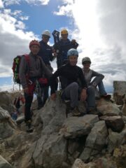 Dal colletto Freshfield siamo rimasti al centro della parete fino alla cima Purtscheller. Da qui abbiamo seguito il filo di cresta che offre sempre buoni appigli anche se spesso è molto esposto. Nessun segno in loco nè protezioni ma basta seguire la cresta. Condizioni meteo perfette con panorama a 360 ° dal mare della costa azzurra a tutto l’arco alpino.