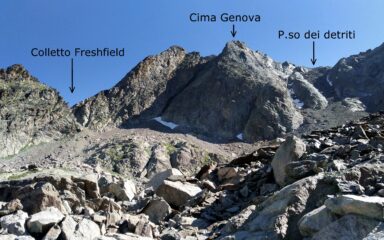 Partiti alle 7.30 da Pian della Casa, dopo una breve sosta al rifugio Remondino per un caffè ed una fetta di torta (confermo l’ottima accoglienza della nuova gestione), alle 10.30 siamo al colletto Freshfield.