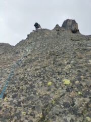 Con Fulvio,sempre inarrestabile.Torno su questo itinerario storico dopo quasi vent’anni (invernale solitaria dicembre 2003), bellissimo e sempre un’emozione stare in una parete così vasta.Discesa passando dal Remondino,di cui ringraziamo gestore e staff per la pasta e la birra fuori orario!Alla cumbre siempre!