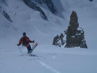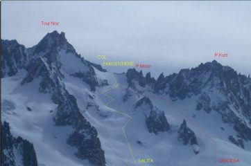 Fabrizio,Achille,Massimo,Fabio:tramite un canalino (corda doppia) scesi sul Glacier des Rouges du Dolent