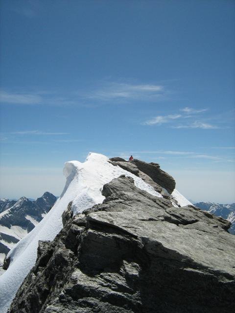 Altra gita splendida fatta dall’Averole. Partenza alle 6 dopo avere pernottato nel locale invernale del rifugio, un po’ affollato ma molto confortevole e dotato di tutto. Si cammina 15 minuti circa prima di trovare la neve all’inizio del canalone, che si risale con un po’ di fatica a cuasa della neve un po’ bugnosa, specie nella parte bassa in cui lo spazio è limitato…utilissimi i coltelli fin da subito visto il buon rigelo notturno. Poi man mano che si sale la superficie diventa liscia e non ci sono più problemi. Una volta raggiunta la cresta, abbiamo risalito con i ramponi gli ultimi 200 metri di dislivello prima della vetta, che abbiamo raggiunto intorno alle 10.30. Panorama grandioso anche vista la giornata spettacolare.