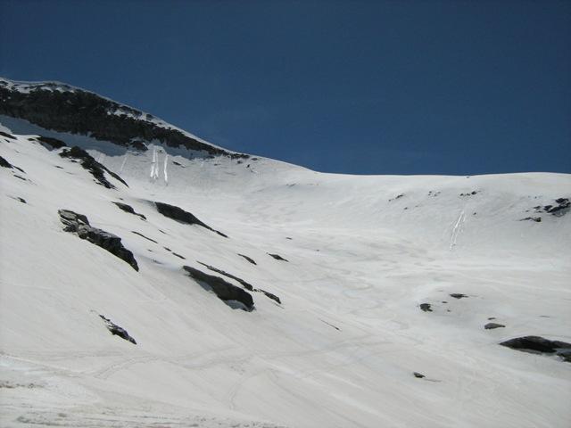 Discesa iniziata intorno alle 11; la parte alta è da 5 stelle, un biliardo con 4 dita di marcetta su fondo duro…praticamente perfetta dovunque si decida di scendere…in particolare il pendio appena sotto la cima è da orgasmo…