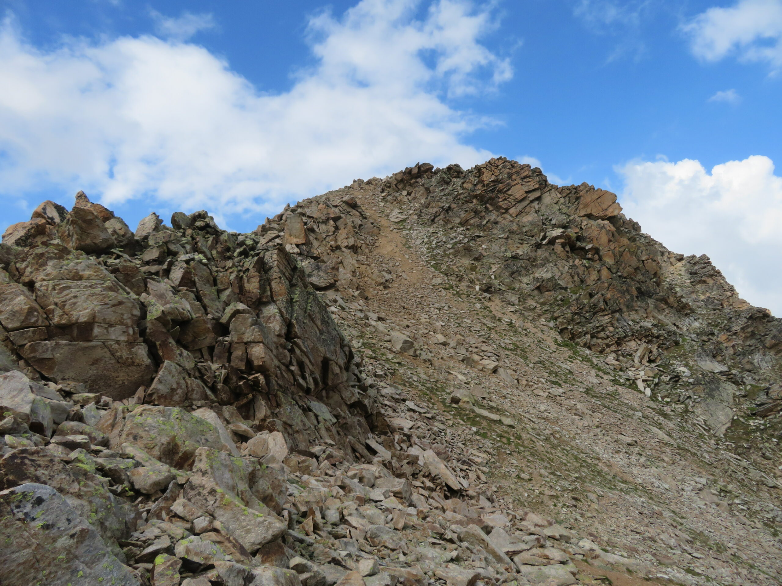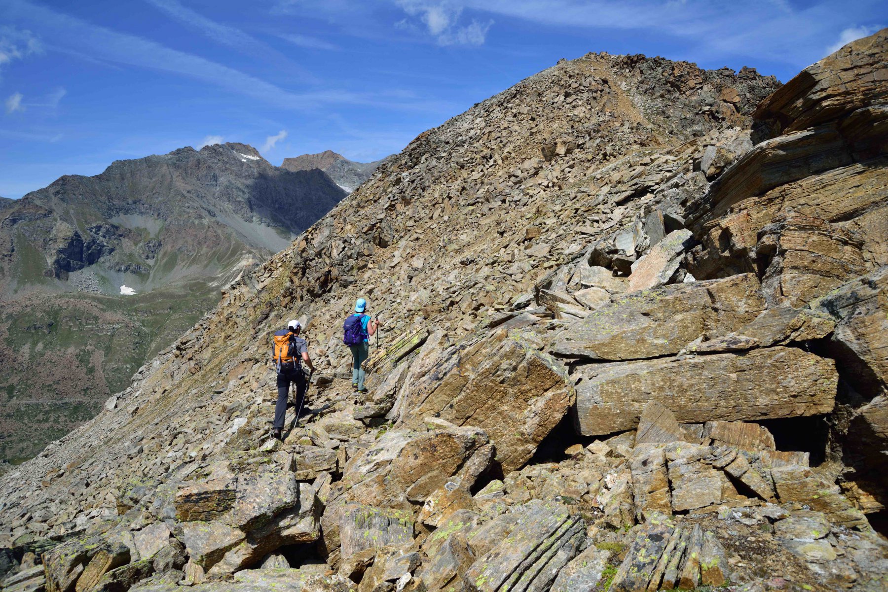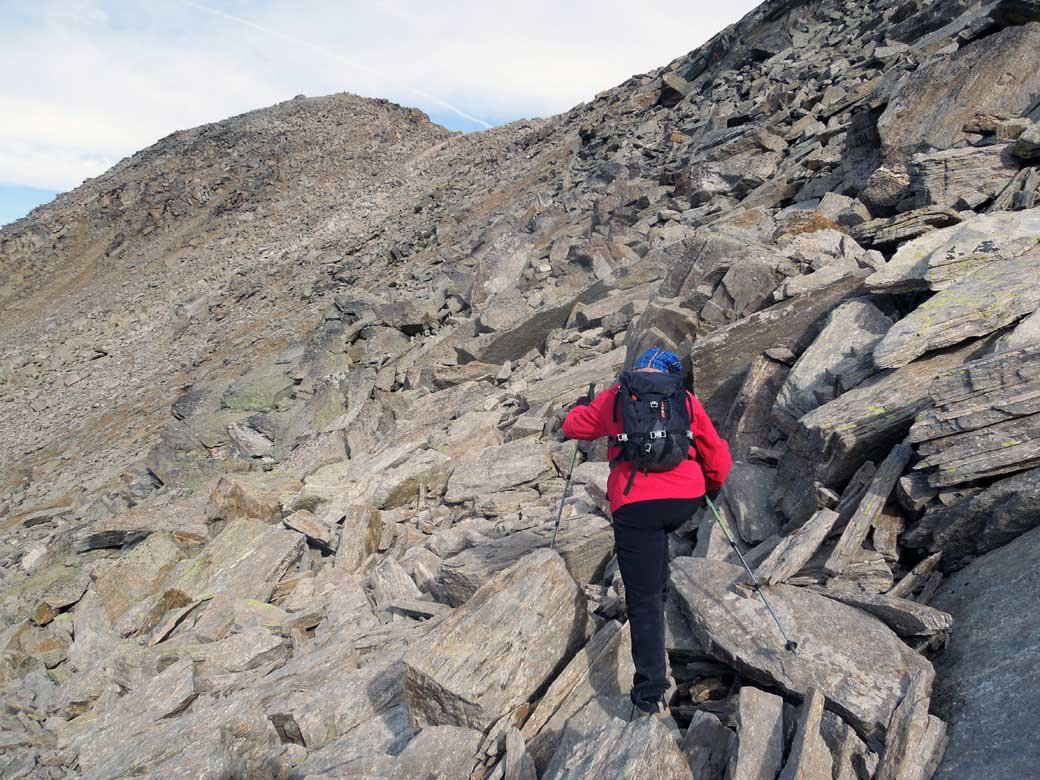 Scendere sul percorso di salita andando a riprendere il sentiero per il Gran Collet 2832 m che si raggiunge con una breve risalita.