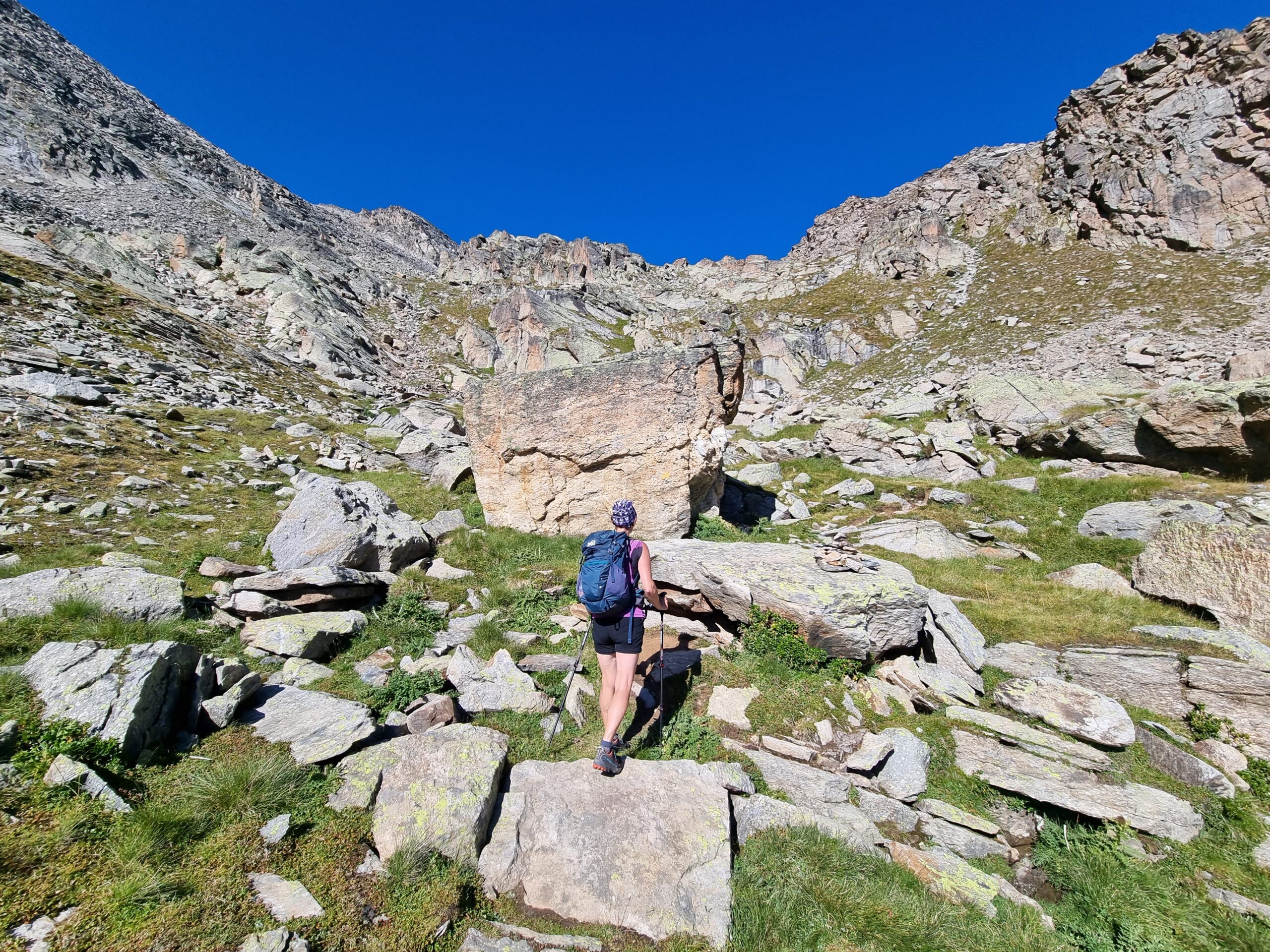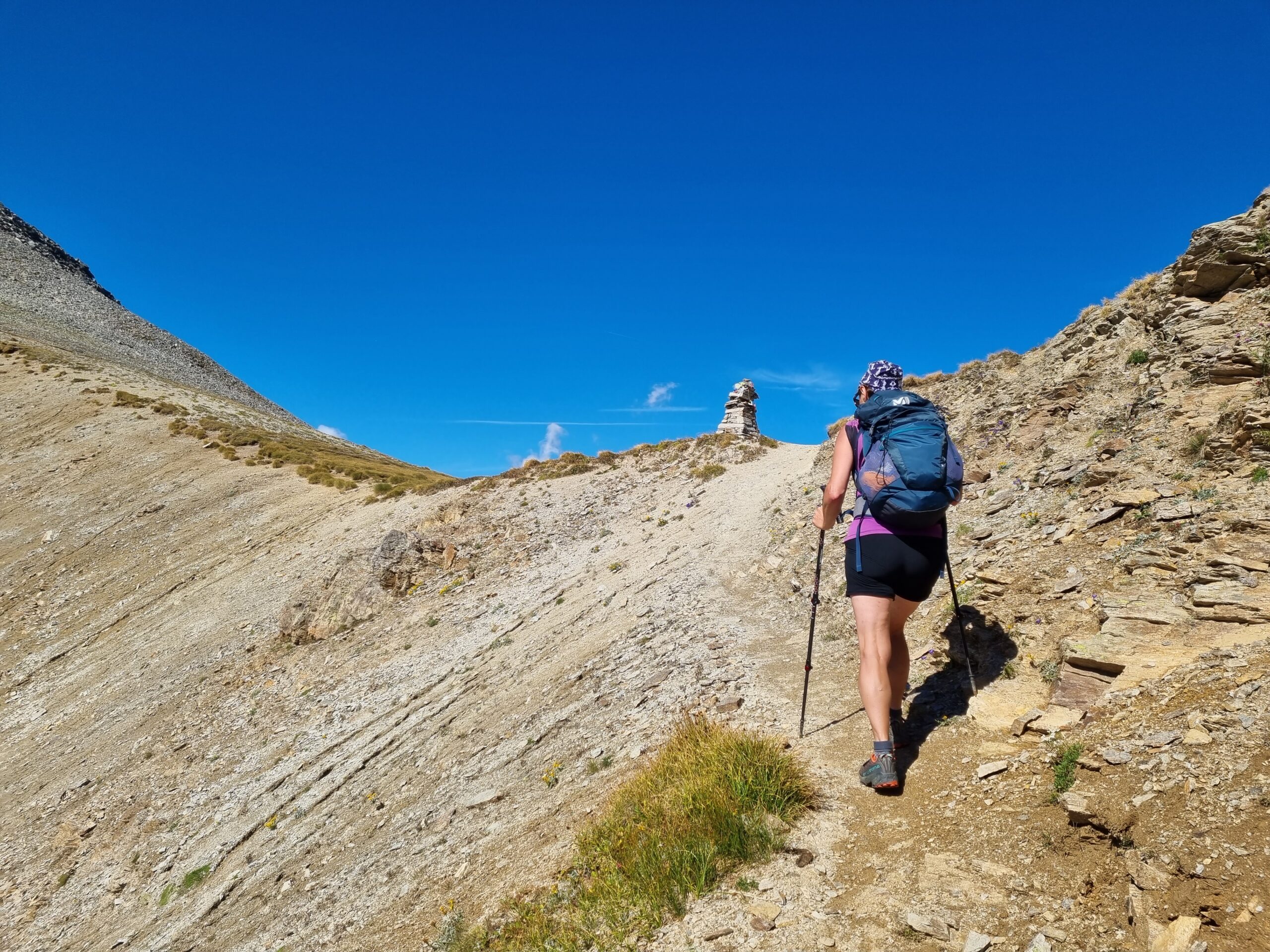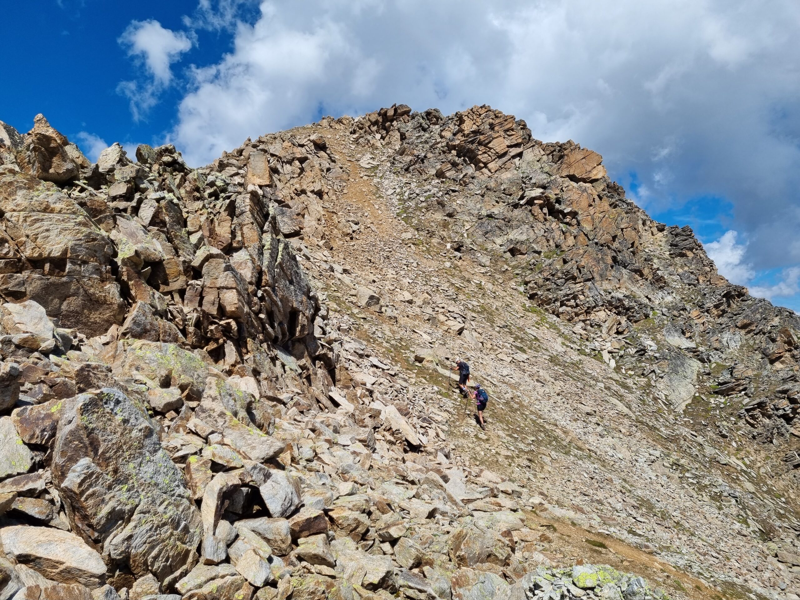 Scendere sul percorso di salita andando a riprendere il sentiero per il Gran Collet 2832 m che si raggiunge con una breve risalita.