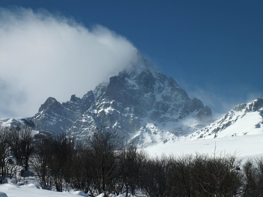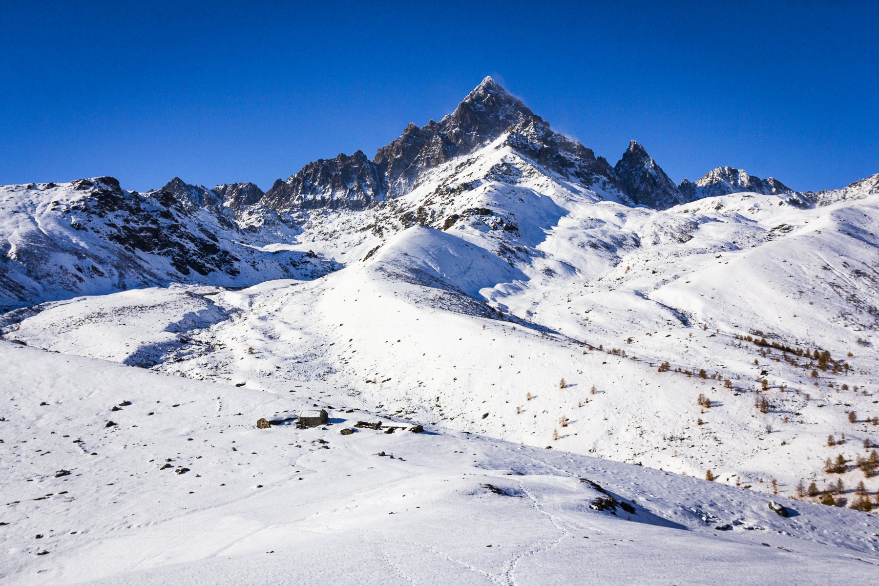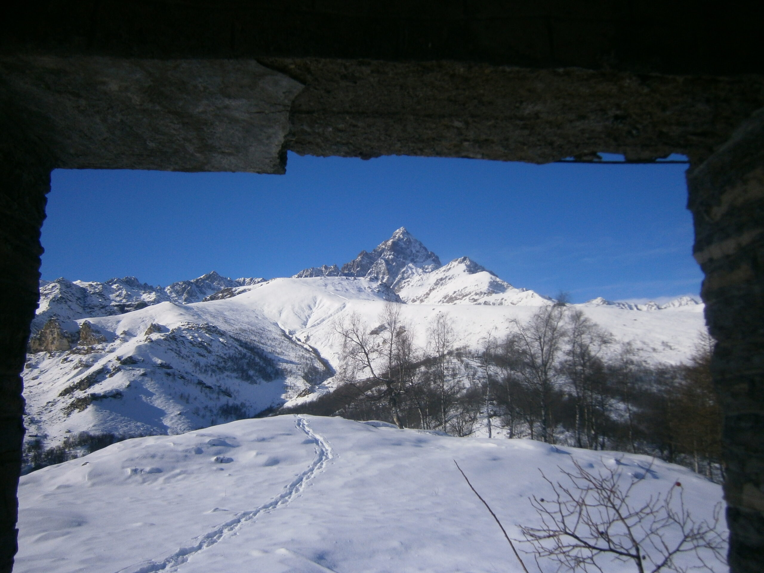 Seguendo l’ampia poderale si raggiungono le borgate di Paschié, Meisonette, Meire Tirolo e le Case Costa (1686m). A questo punto conviene abbandonare la poderale e salire per l’itinerario più sicuro alla evidente croce di vetta del Bric Arpiol, stupenda balconata sul gruppo del Viso.
