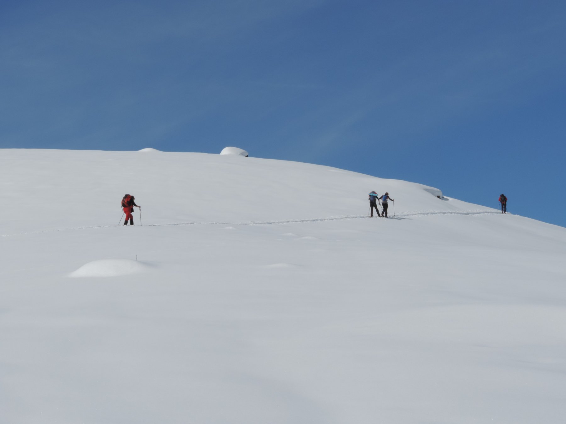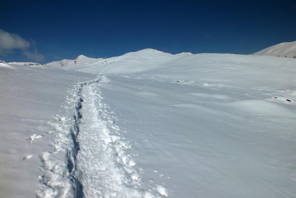 In caso di scarsa visibilità, proseguire lungo la poderale fino alle Case Arpiol ( 1765m ) e proseguire sulla dorsale fino in vetta