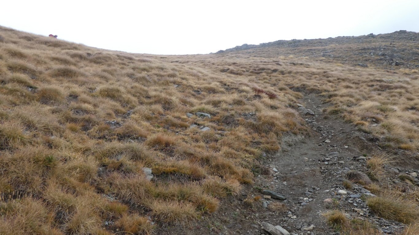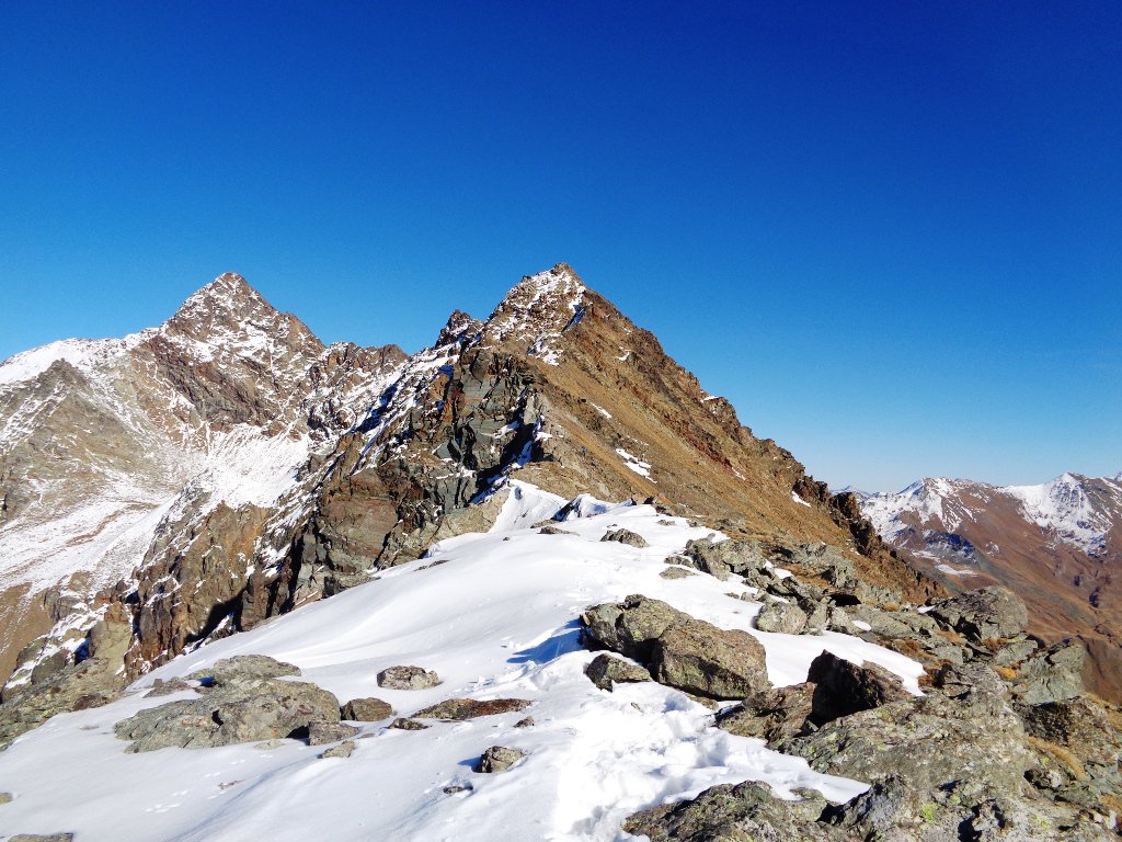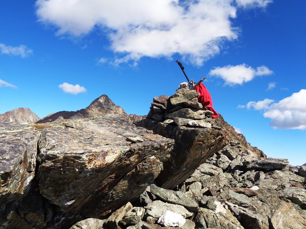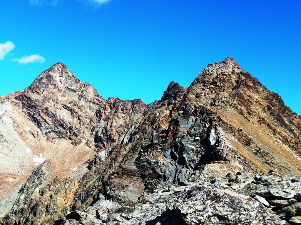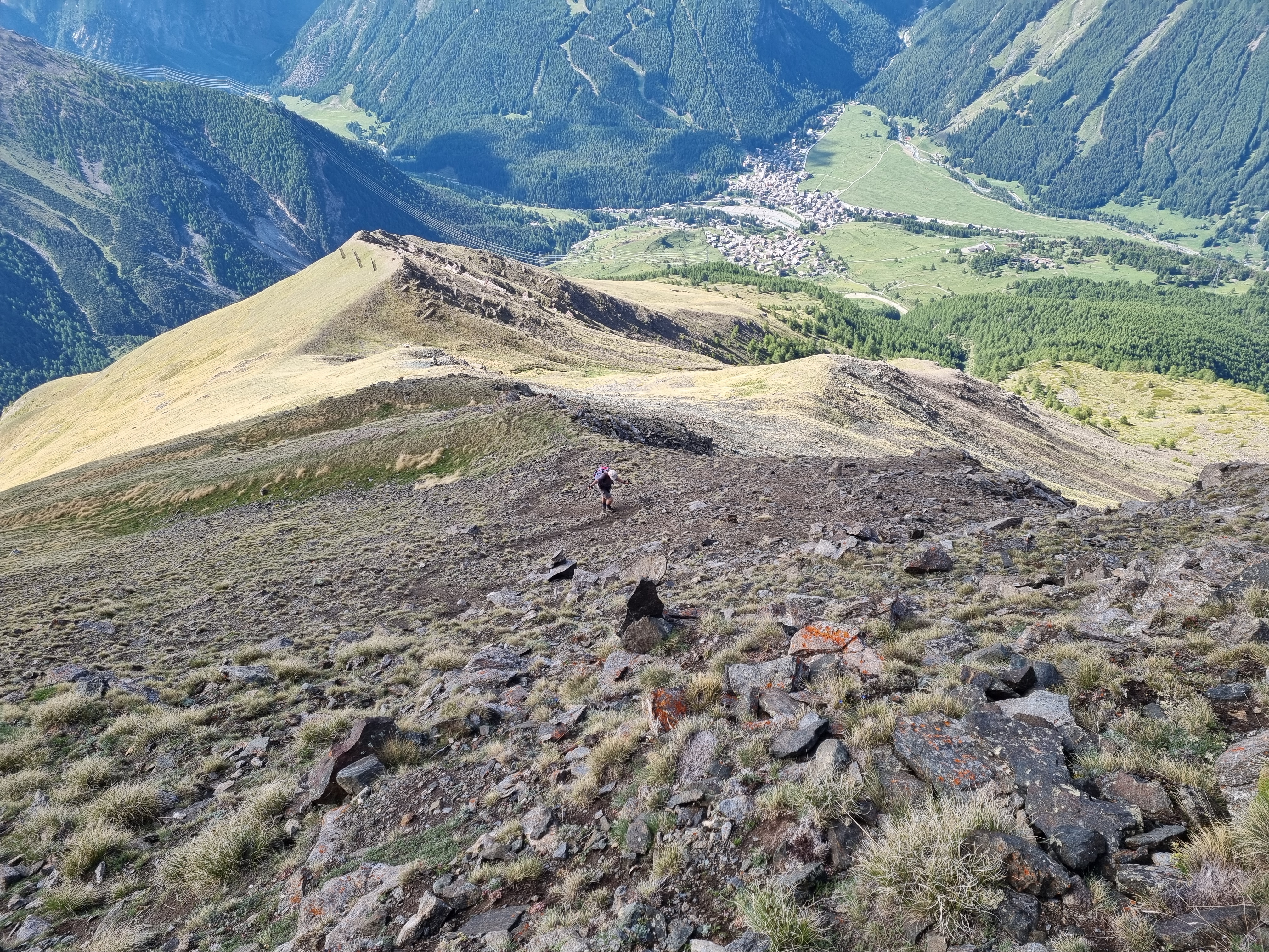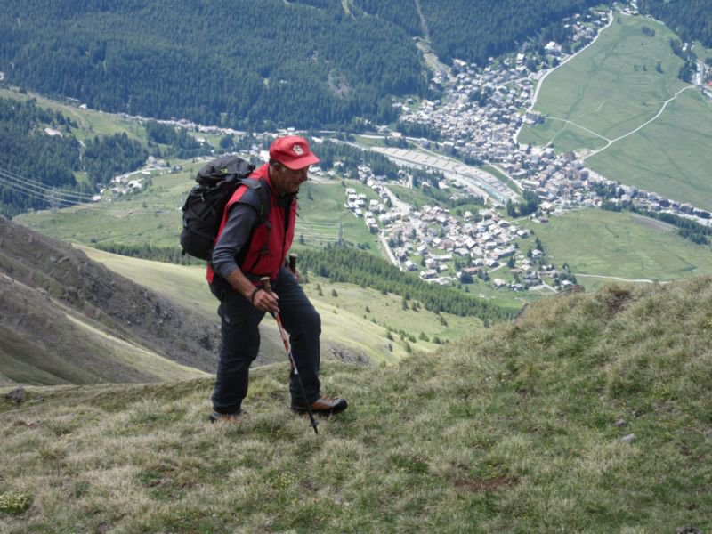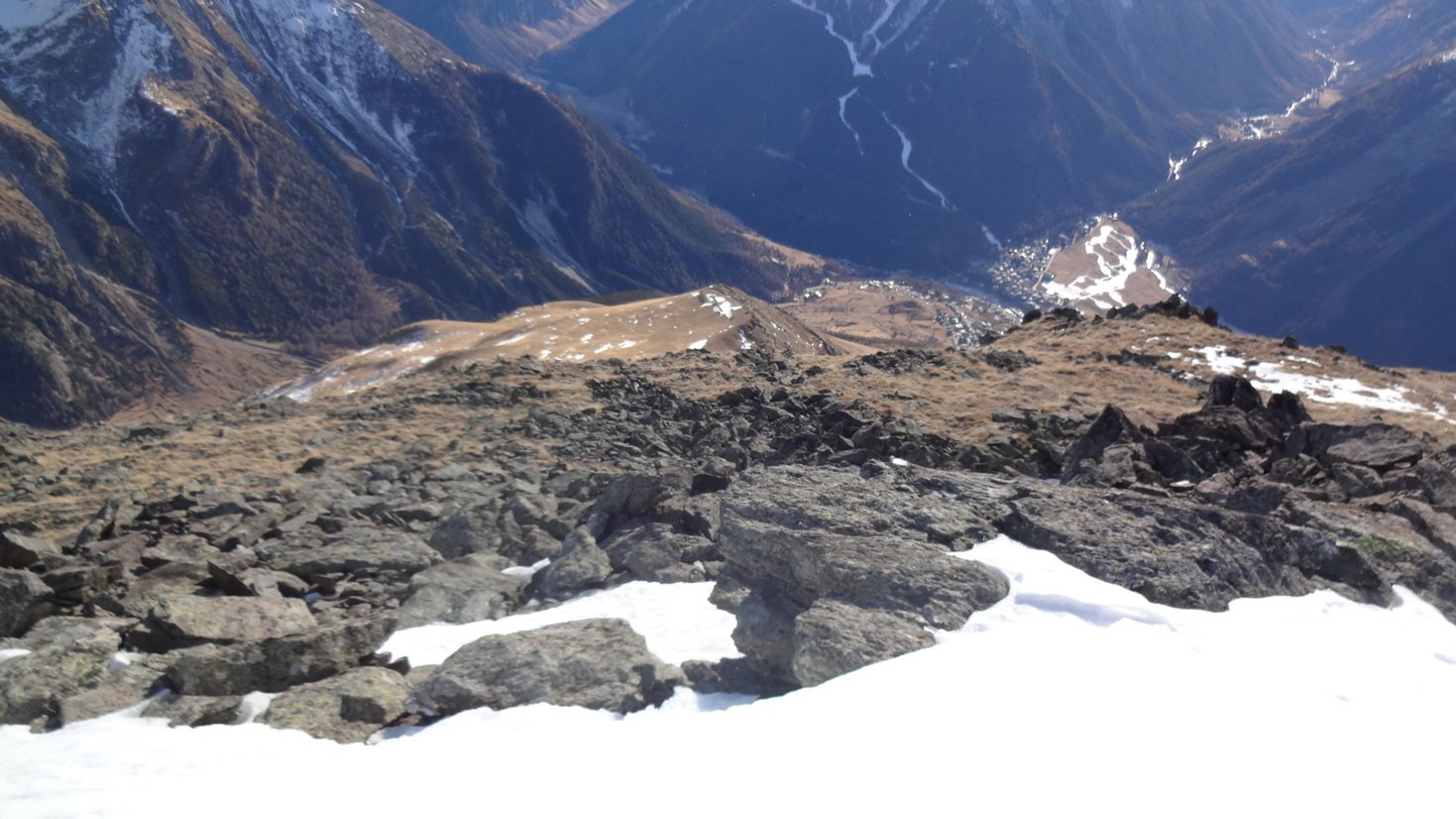 Dalla Tsaplana è molto evidente il restante percorso per la cima, ovvero non resta che risalire con percorso a piacere il ripido pendio di erba e detriti in direzione nord. Non esistono tracce (se non a tratti molto vaghe), comunque non ci sono passaggi obbligati, conviene però mantenersi più verso la dorsale di destra (ometti). Una volta che la pendenza si abbatte, si è in vetta (ometto), gran panorama.