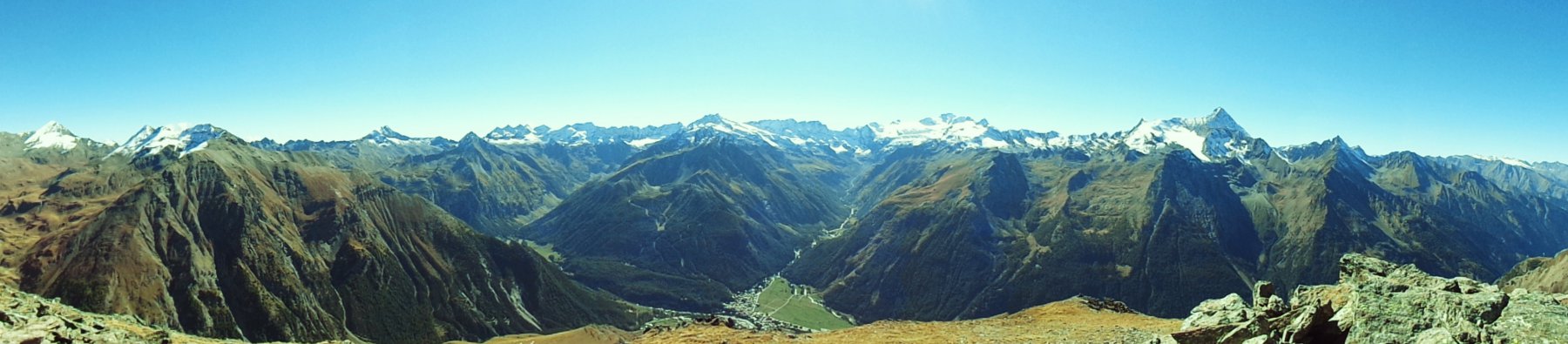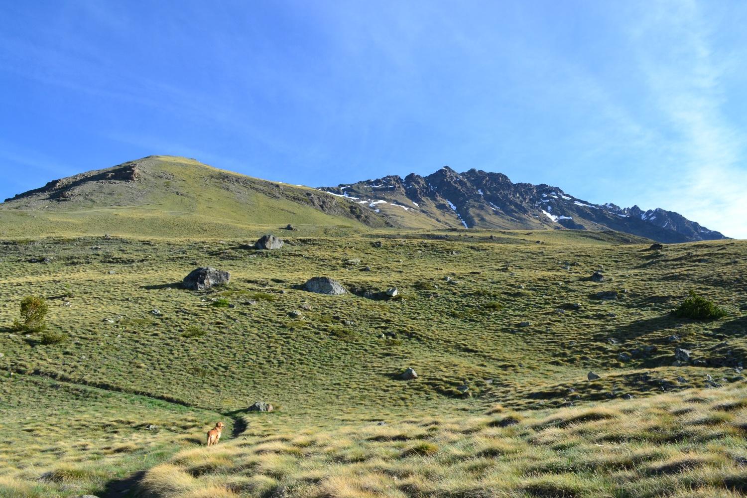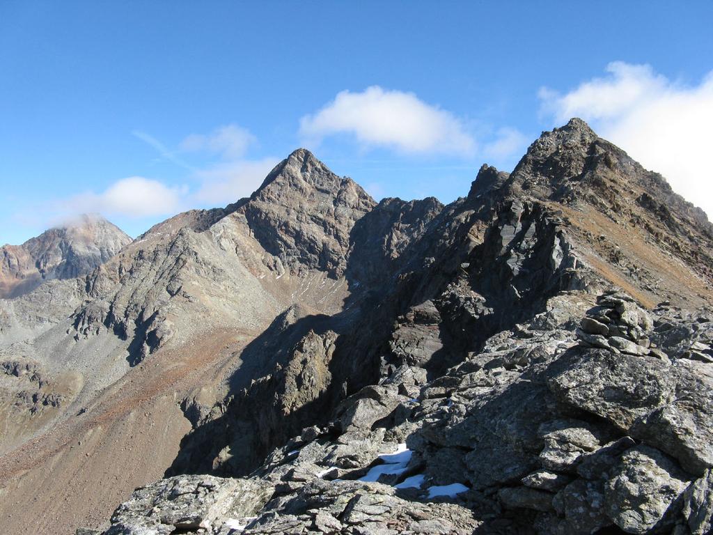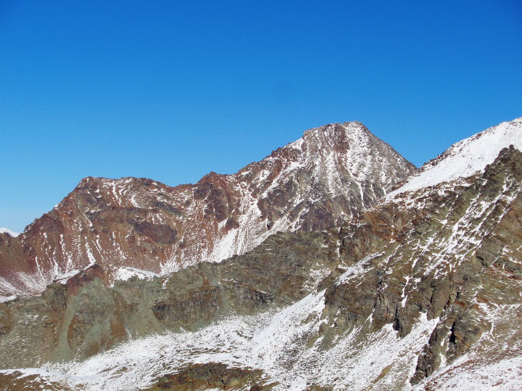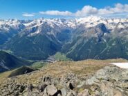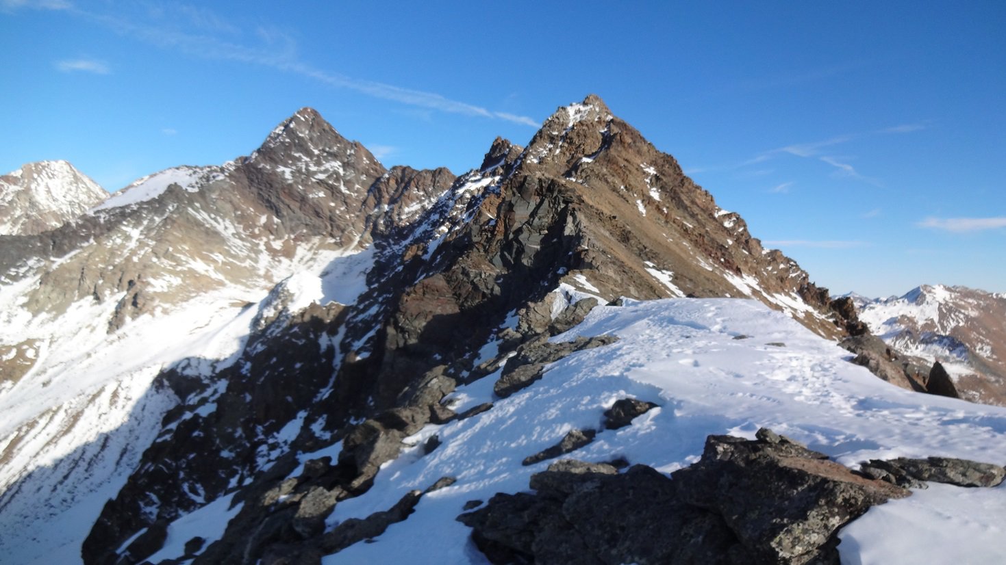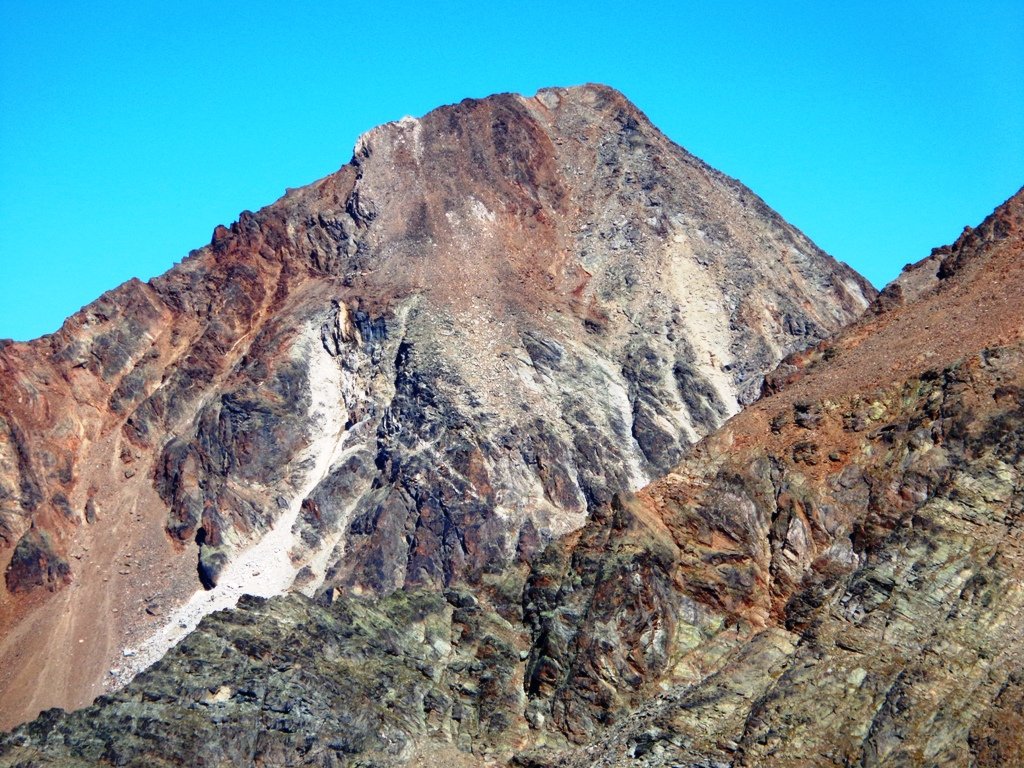 Dalla Tsaplana è molto evidente il restante percorso per la cima, ovvero non resta che risalire con percorso a piacere il ripido pendio di erba e detriti in direzione nord. Non esistono tracce (se non a tratti molto vaghe), comunque non ci sono passaggi obbligati, conviene però mantenersi più verso la dorsale di destra (ometti). Una volta che la pendenza si abbatte, si è in vetta (ometto), gran panorama.