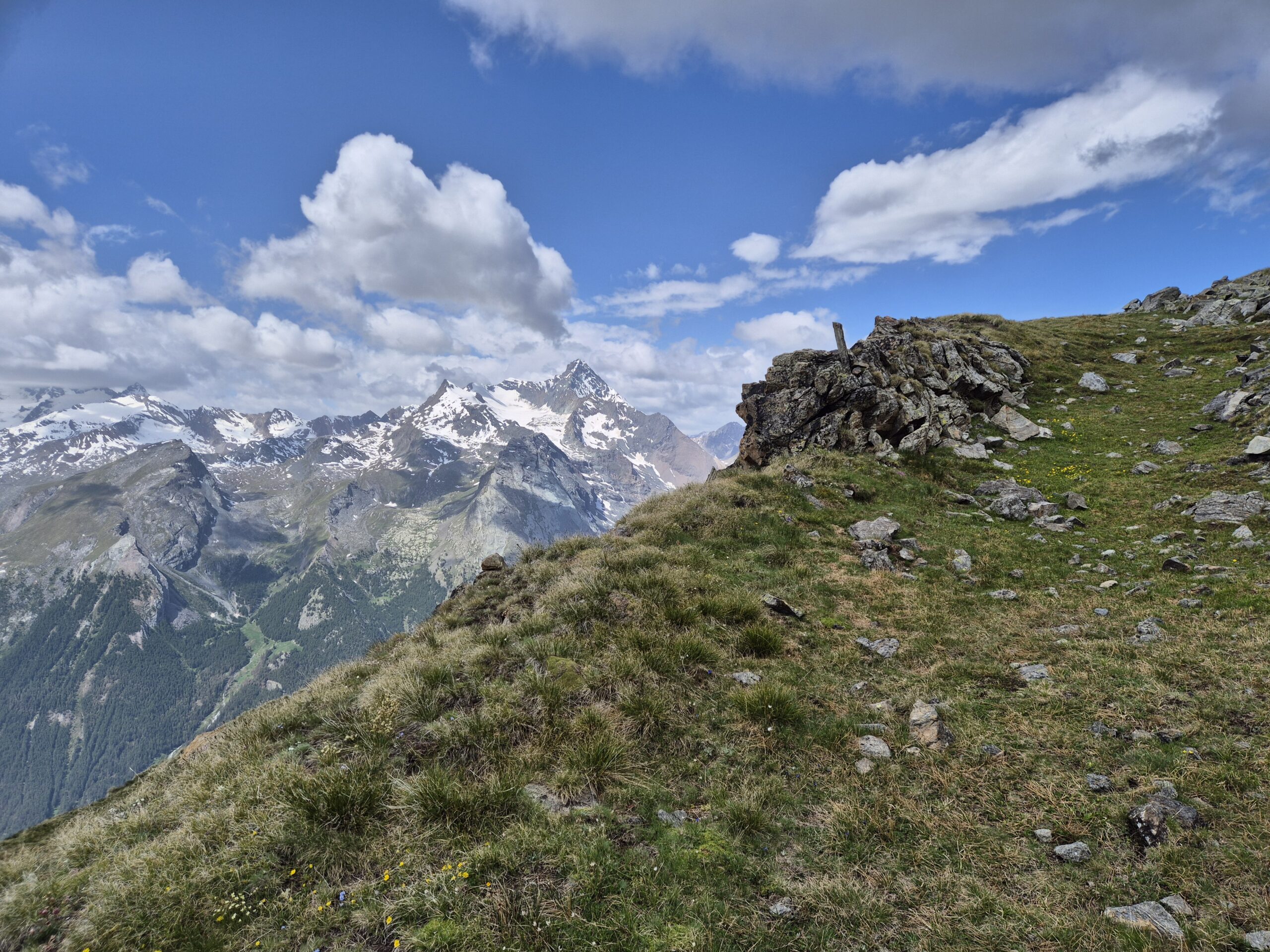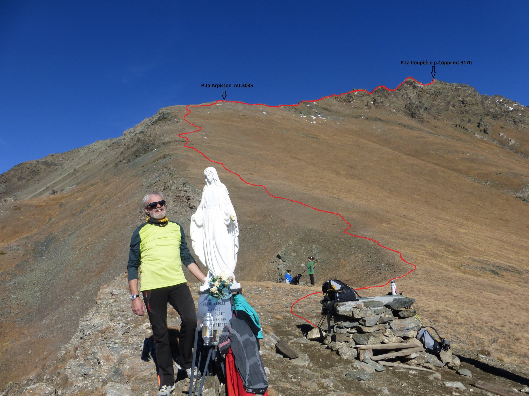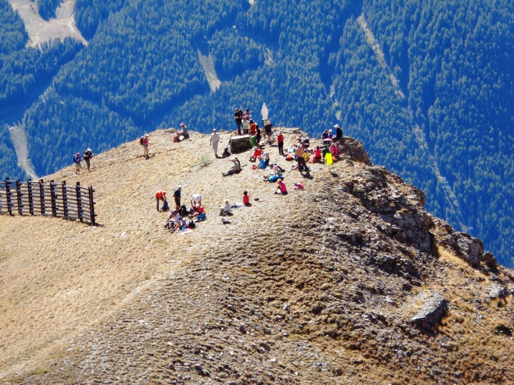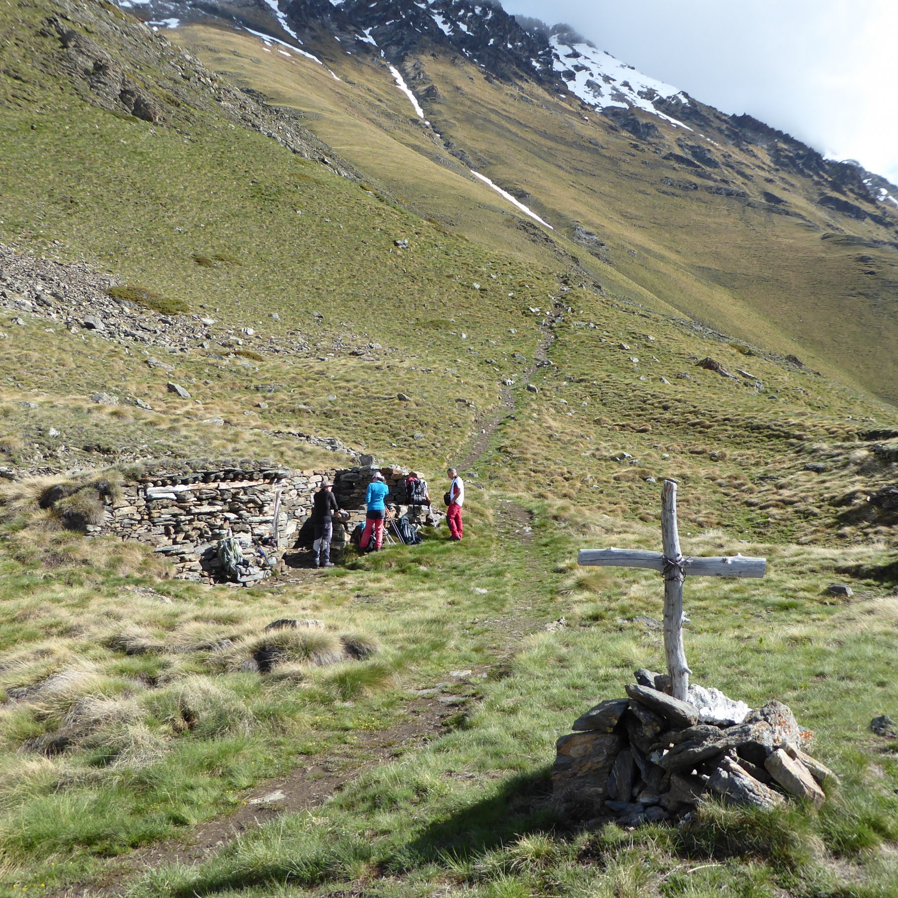 Oltre a questa piccola conca erbosa, il sentiero inizia a salire più ripido, per portarsi sotto la Tsaplana e i suoi paravalanghe, che si raggiunge con un’ultimo strappo. In cima 2677 m è presente una statua della Madonna.