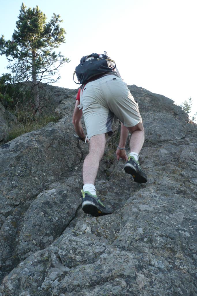 Uscita dopo lavoro in una serata finalmente non piovosa. Seguita la strada sterrata per Favella dopo un po’ siamo saliti nel bosco senza trovare il sentiero descritto nella relazione giungendo sul colletto dopo monte Gioran. Saliti quindi sul Gioran e poi in discesa abbiamo raggiunto il colle da dove parte la dorsale est. Seguendo la cresta si giunge in punta con una divertente arrampicata (prestare attenzione solamente alla discesa dei due spuntoni sulla cresta tra cui l’anticima con croce in pietra se, come noi, si segue fedelmente la cresta).