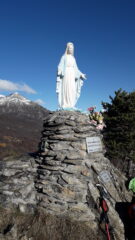 Parcheggiato all’inizio della frazione a pochi passi dalla chiesetta a ridosso della quale intraprendo a salire per larga mulattiera con due svolte ad un colletto, da dove sulla sinistra per traccia di sentiero quasi sempre intuibile, quantunque nascosto sotto uno spesso strato di fogliame e rami di traverso, in breve sono sul Gioran (ometto). Dal Gioran cosi raggiunto mantenendo la dorsale, scendo per portarmi all’attacco della bella e divertente crestina rocciosa, piuttosto abbattuta e per niente affatto esposta. La risalgo per intero fino alla candida madonnina di vetta, trovando la roccia nonostante le continue pioggie sorprendentemente asciutta.