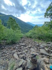 Dalla sterrata all’ometto di attacco alla colata, sentiero invaso da acqua ed erba, a tratti poco visibile. Pietraia ricca di ometti e sentiero di cresta perfettamente segnalato.
