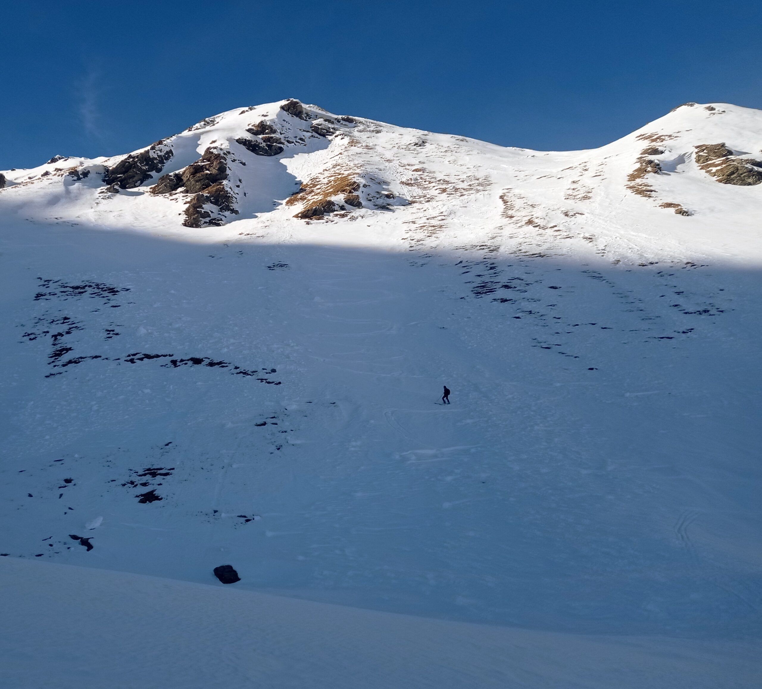 Discesa lungo l’itinerario di salita o in traversata sulla Comba di Flassin.