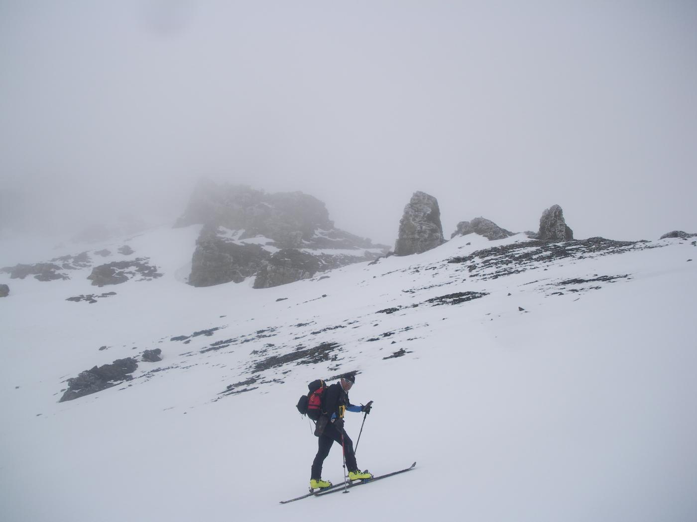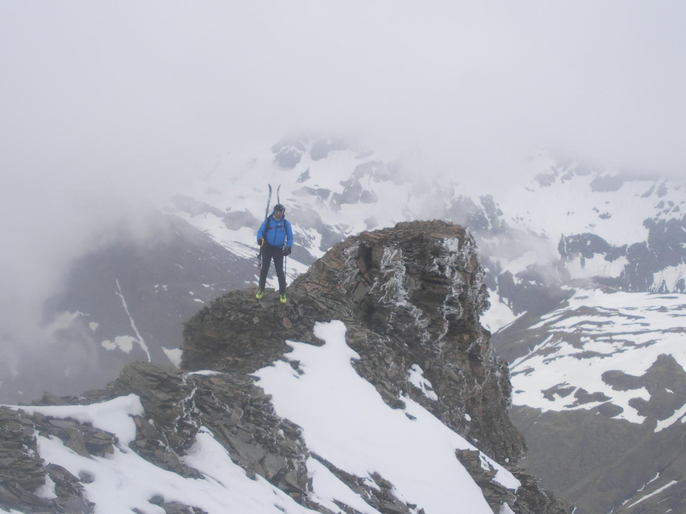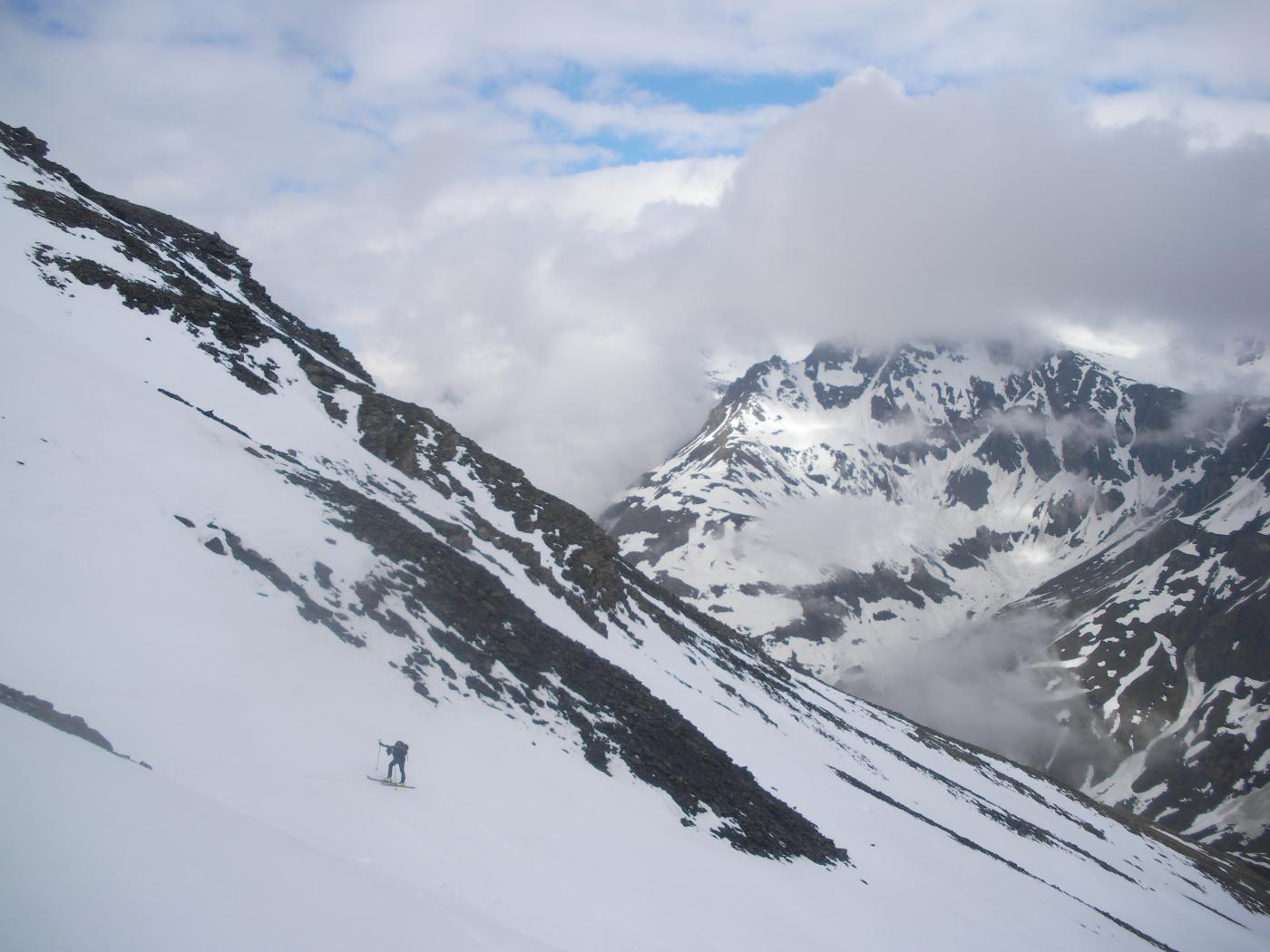 Dal colle si può proseguire su pendii ripidissimi con gli sci o pervenire comunque alla vetta con 50 metri di arrampicata su misto.