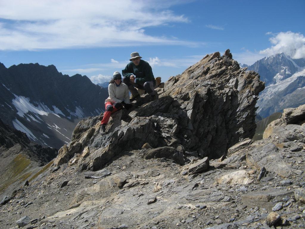 Prima volta in questo remoto angolo di VdA. Siamo saliti per l’Eculés ma poi, ognuno immerso nei propri pensieri, ci siamo trovati troppo spostati a sinistra in fondo alla comba. Veloce attraversamento in direzione della cascata che scende dal pianoro superiore e successiva faticosa risalita della rampa erbosa alla sua immediata sinistra. Sulla mia cartina dell’Escursionista è indicato un sentiero che costeggia a sx il corso d’acqua dopo l’Eculés ma non l’abbiamo visto. Una volta raggiunto il pianoro a monte dell’Alpe Bonalex più nessun problema. Rimango comunque convinto che sia meglio evitare la strada sterrata (o al limite riservarsela per il ritorno), perché si allunga la gita di circa 2 km. Dalla vetta, complice l’ottimo meteo, gran bella vista sul Bianco. Scendendo, abbiamo costruito tantissimi ometti lungo la via fino a quota 2700 circa, da dove attraversata la pietraia si ridiscende lungo il canale a fianco del torrente.