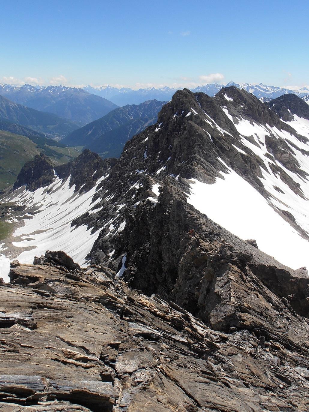 Non pensavo, ma oggi il grande vallone è stato tutto per me e qualche camoscio. Sbucare da nevaio in cresta e vedere “in faccia” Monte Bianco e Jorasses è da pelle d’oca…