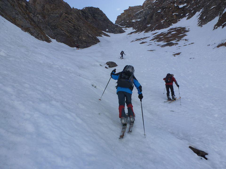 Non difficilissimo il 1′ canale, ma da tempo non affrontavo pendenze cosi’ sostenute, in particolare in skialp.