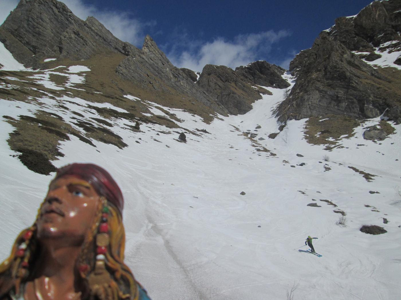 Oggi con una ciurma di pirati ValdoStrani. Un saluto alla bella Rebecca oggi in gran forma! Ancora alta marea nel vallone (sci dall’auto) e un po’ di vento al largo.