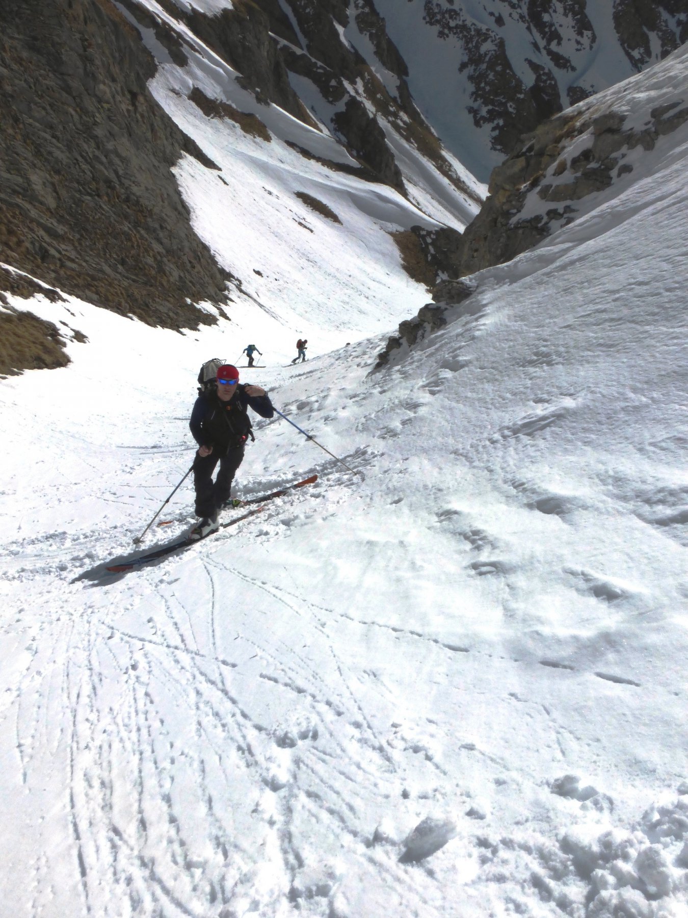 si parte sci ai piedi dalparcheggio, siamo saliti sul canalino a sinistra, che è consigliabile per la Bonalè e per la Gr.Rochère, ridiscesi leggermente sul pianoro e saliti poi sulla traccia tradizionale molto caldo nella parte centrale e anche in quella alta,assenza completa di vento che oggi sarebbe stato di sollievo, discesa su neve molto divertente su tutto il percorso.