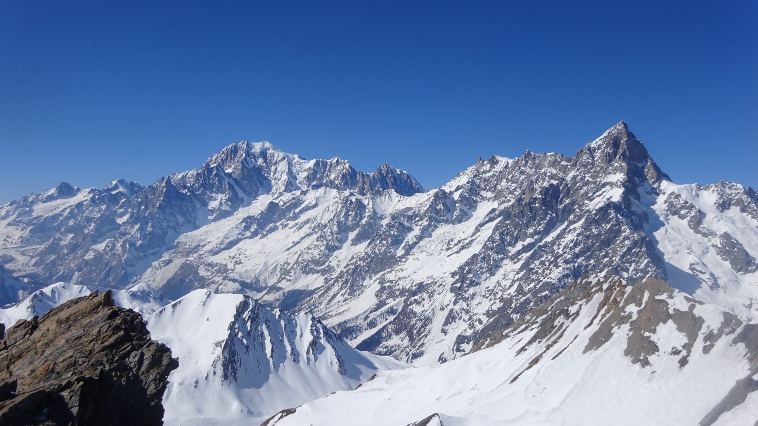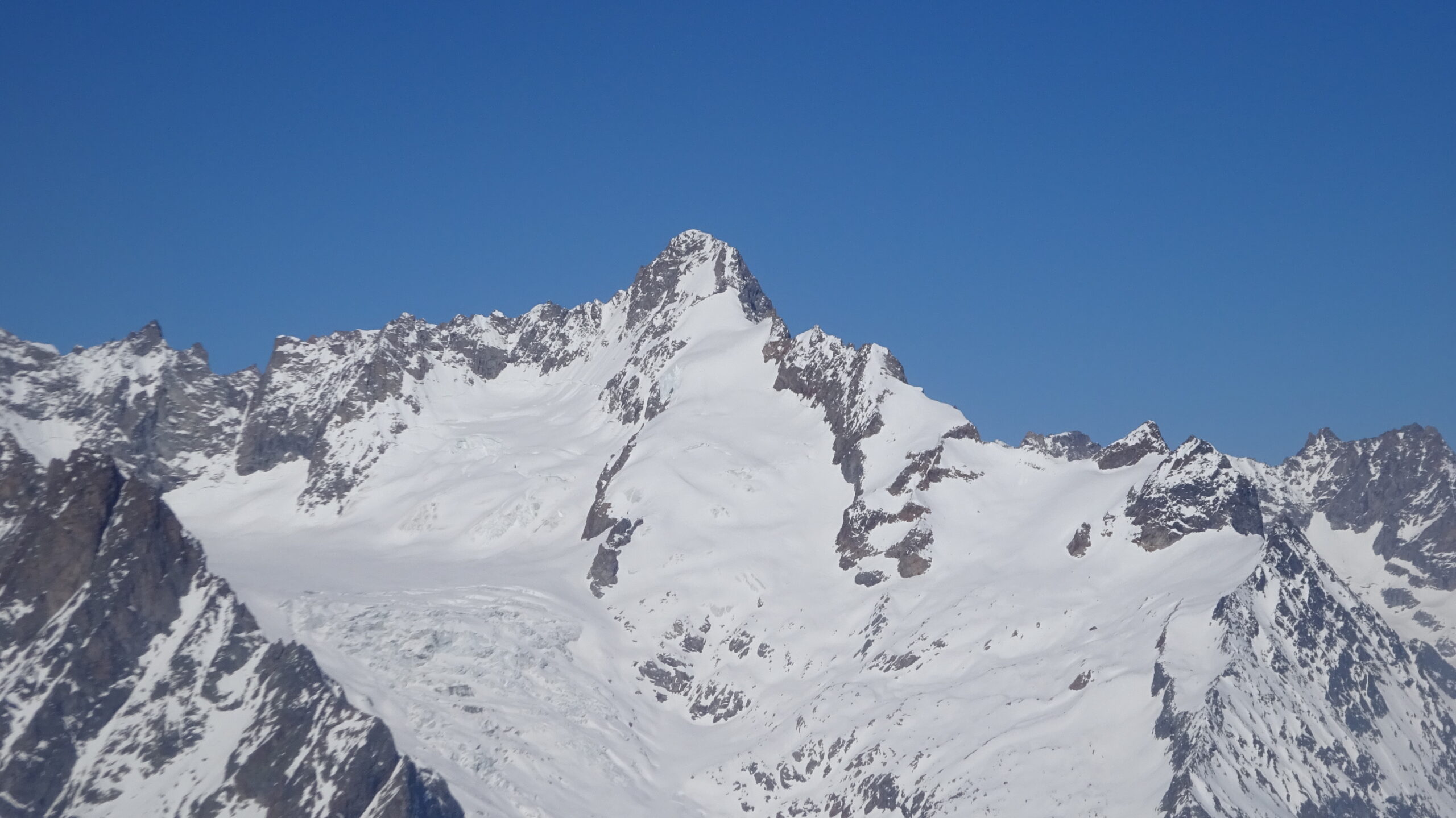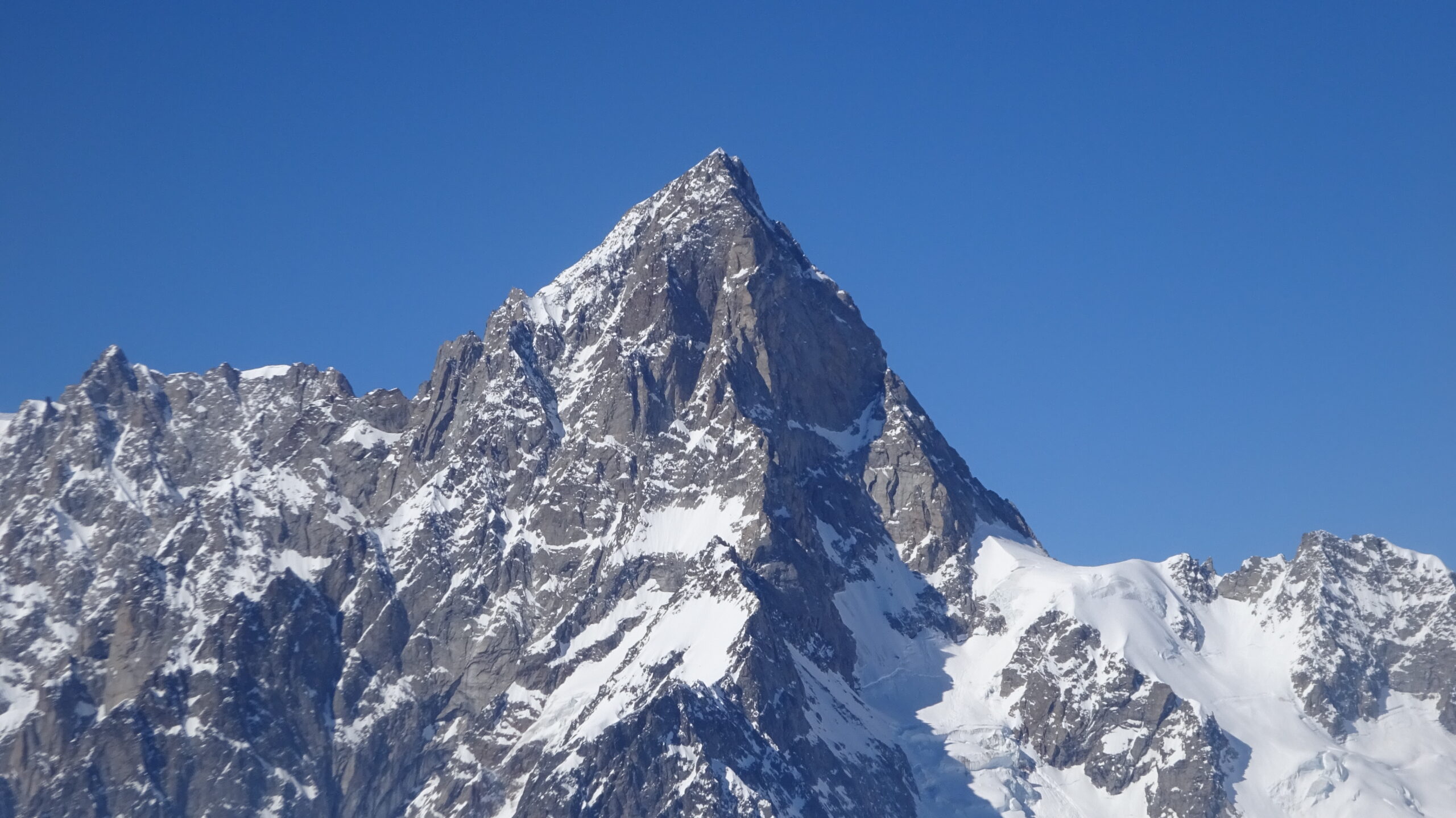 Siamo partiti dal ponte sul Torrente Grand Eau di Planaval sci ai piedi, ed abbiamo percorso il fondovalle in direzione nord, che poi sale gradatamente verso la baita di Les Ecules. Abbiamo quindi risalito il primo angusto canale che parte a quota 2.100 e porta sui primi ampi ripiani superiori a quota 2.350: la copertura nevosa è purtroppo esigua, appena sufficiente a risalire con gli sci (ma sono consigliabili i coltelli) oppure con i ramponi. Dopo il canale continuiamo in direzione dell’Aguille d’Artanavaz su traccia sempre evidente, e non sono più necessari nè i coltelli nè tanto meno i ramponi sino alla vetta. Gli ultimi metri per raggiungere la cima sono privi di neve, e sono comunque comodamente percorribili a piedi in pochi minuti. Dalla vetta l’affaccio sul Monte Bianco e sulle Grand Jorasses è davvero spettacolare, ci godiamo perciò il panorama, poi cambiamo assetto e ci accingiamo alla discesa.