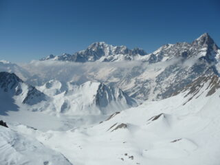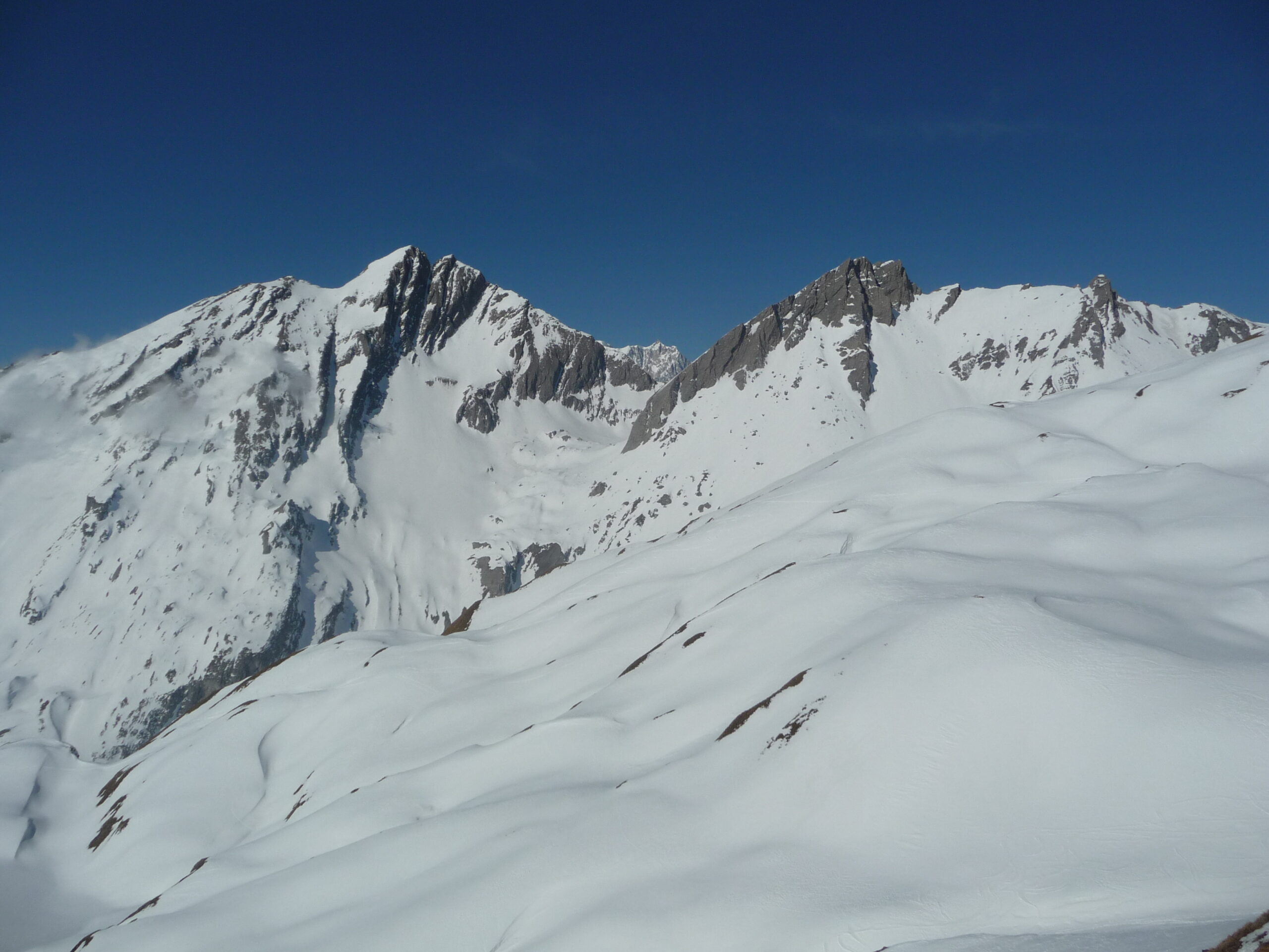 Saliti dalla stradina direzione colle Serena. Da li saliti alla Costa Serena per poi perdere un centinaio di metri e risalire ad una anticima del Grand Creton. Da li scesi in direzione Nord Ovest su neve discreta e belle pendenze nella parte iniziale fino a congiungerci con l’intinerario qui descritto. Saliti in vetta ultimi metri a piedi. Discesa fino al pianoro divertente dalla farinella vecchia in alto alla primaverile marciotta… Rientrati poi sulla stradina della salita.