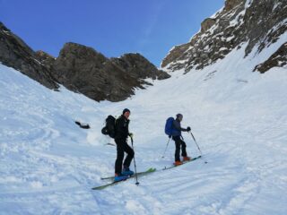 Partenza poco prima delle 8 con buon innevamento già alla partenza. Il primo ripido pendio si sale con i rampant e poi con i ramponi. Molte valanghe presenti sul percorso, piuttosto lungo e reso impegnativo dalla giornata calda e priva di vento. La vetta si raggiunge sci ai piedi. Panorama stupendo sul Monte Bianco e le Grandes Jorasses. Discesa su neve primaverile un pochino pesante nel primo tratto e poi in parte su coni di valanga. La neve migliore è da quota 2.400 in giù dove il manto è trasformato. Una gita di grande soddisfazione in ambiente selvaggio e deserto con gli amici Vincenzo, Luca e Matteo.