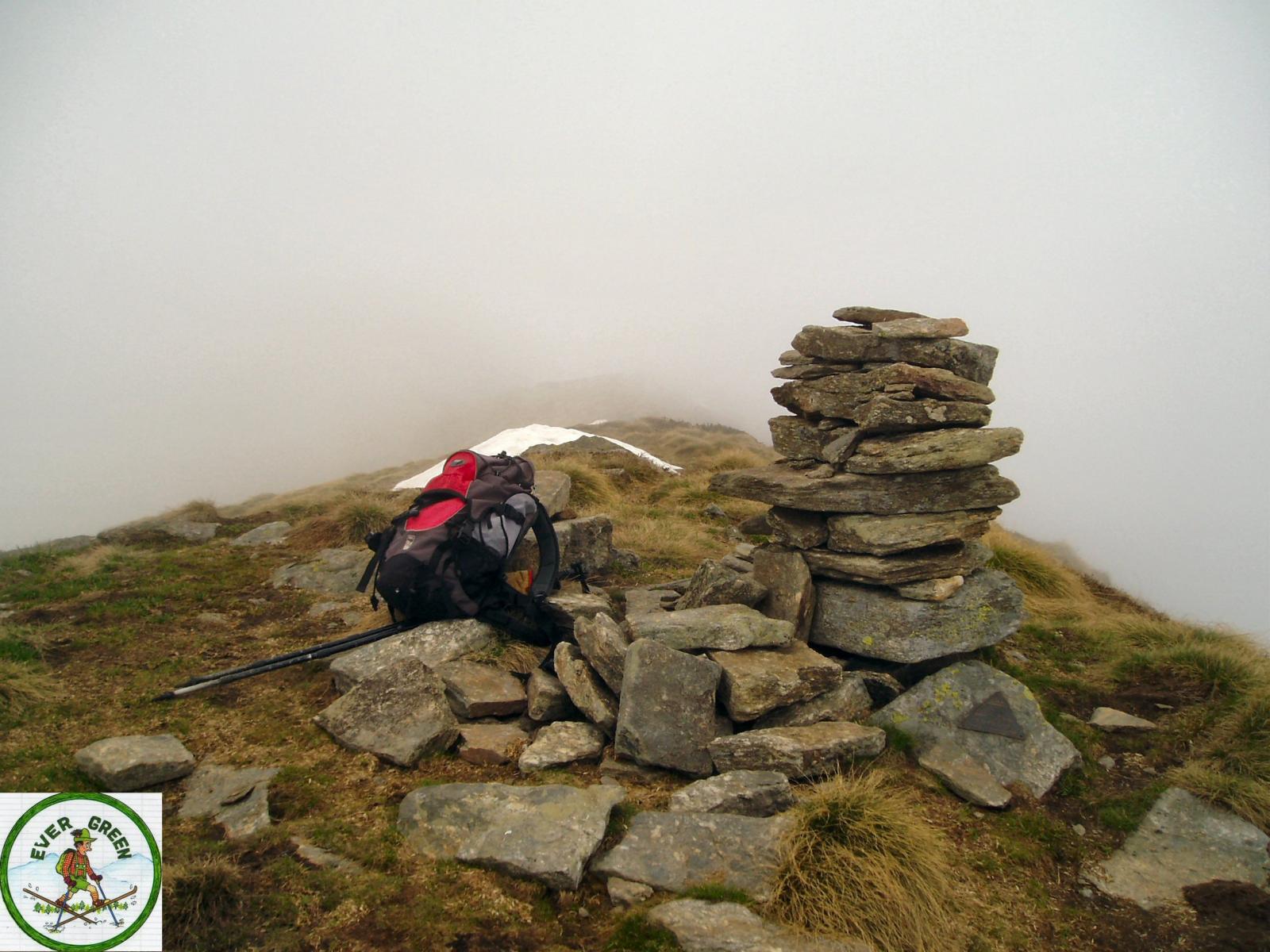 In cima era accoccolato un camoscio che appena mi ha visto è scomparso nella nebbia.