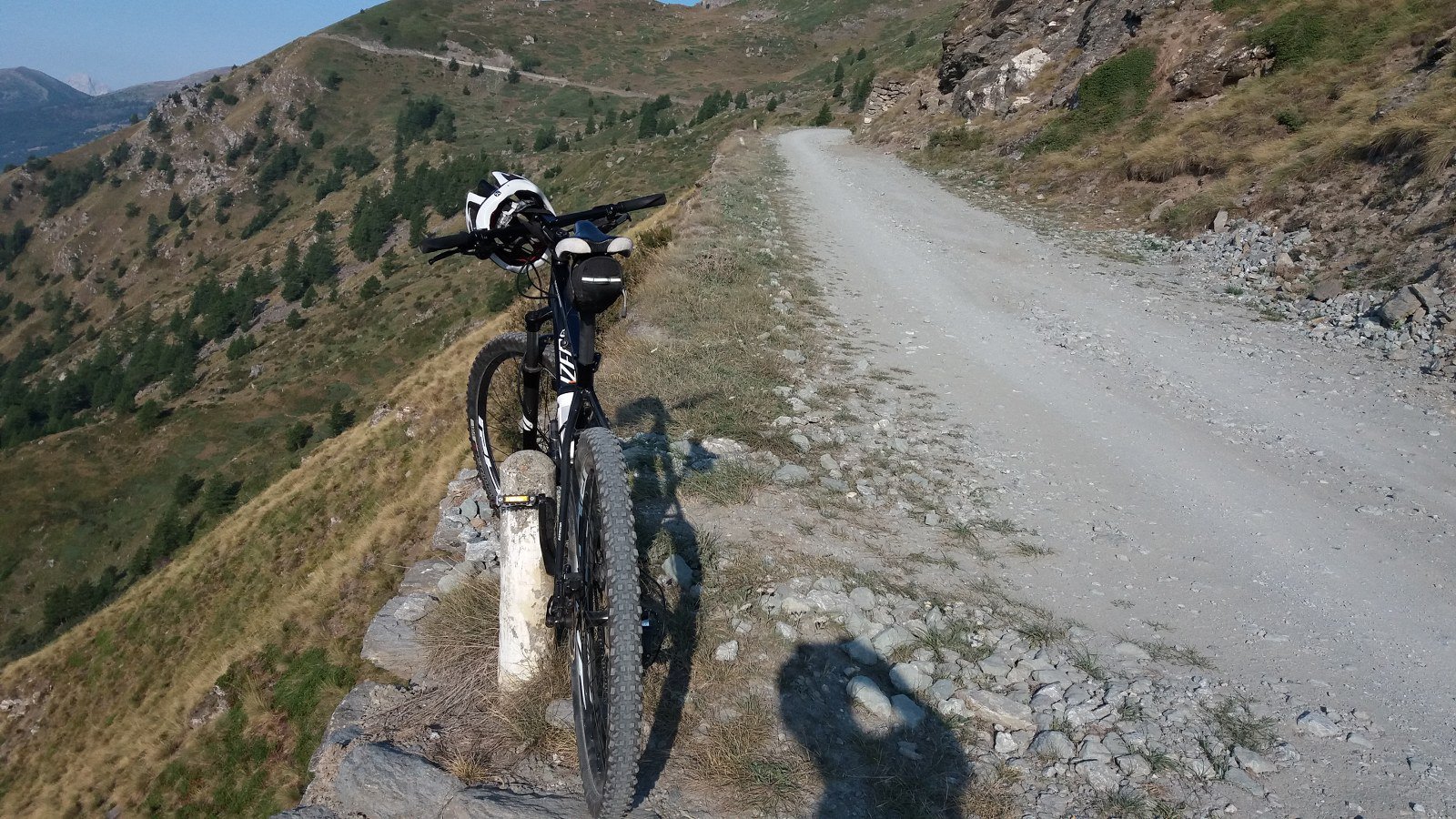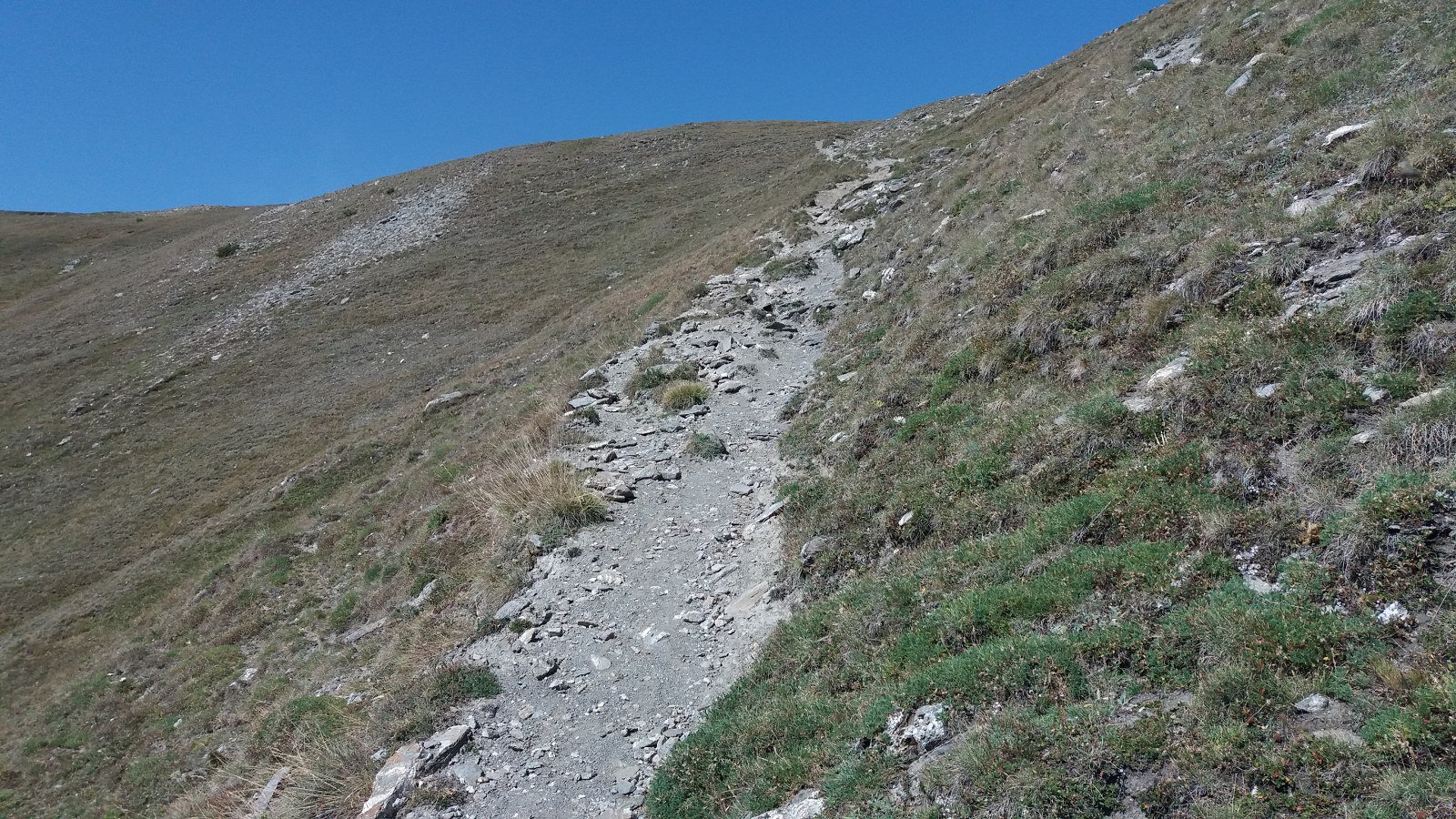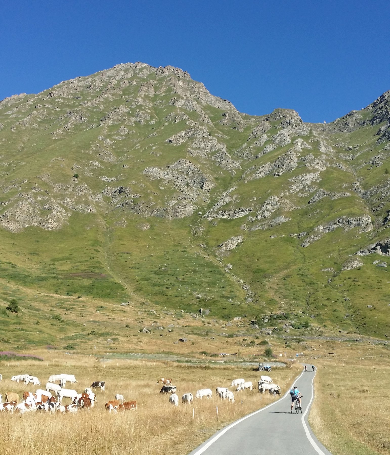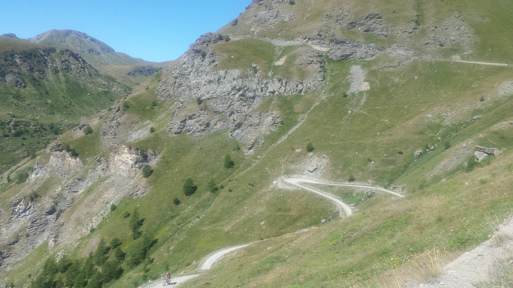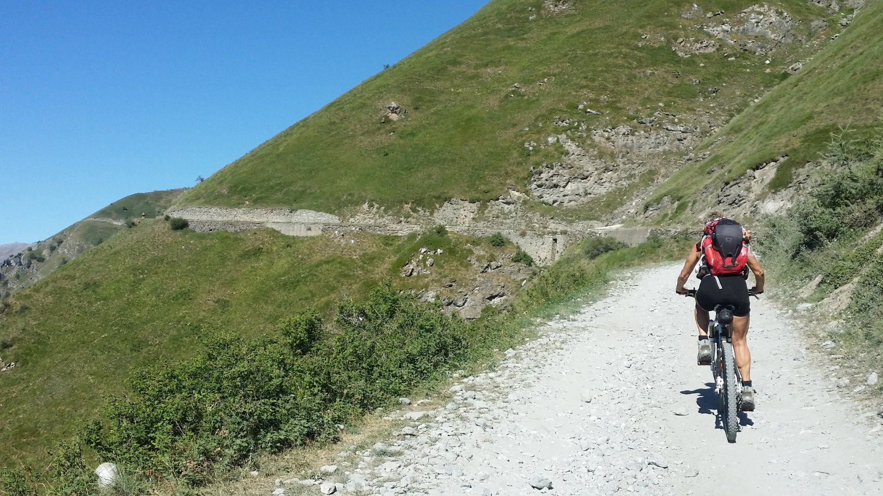 La salita prosegue con pendenze sempre regolari fino al Colle dell’Assietta (2.472 m), posto sullo spartiacque tra Val di Susa e Val Chisone. Con un ultimo breve tratto di salita si giunge in vista del monumento che campeggia sulla modesta elevazione della Testa dell’Assietta (2.565 m), che si raggiunge con una deviazione di pochi minuti.