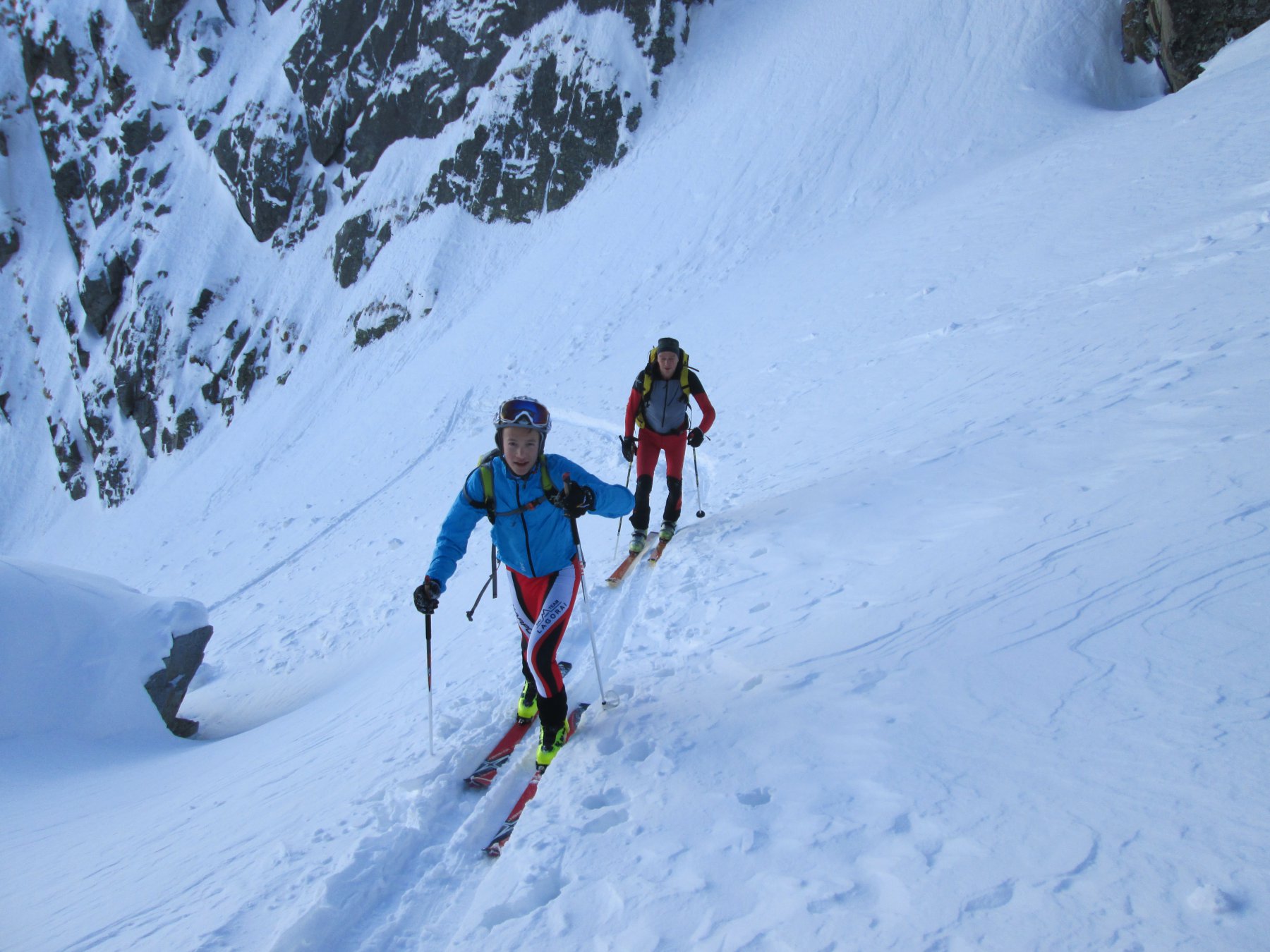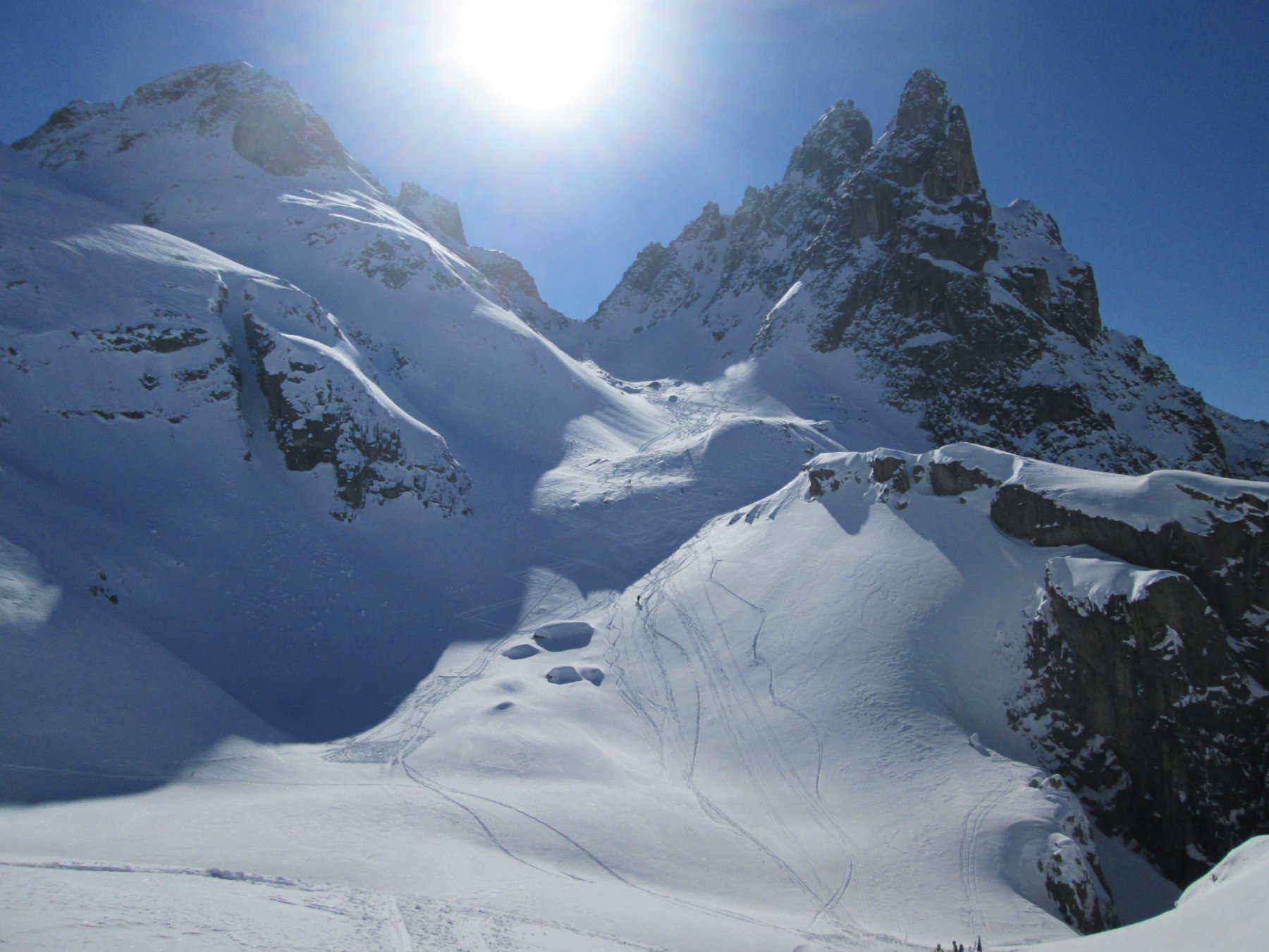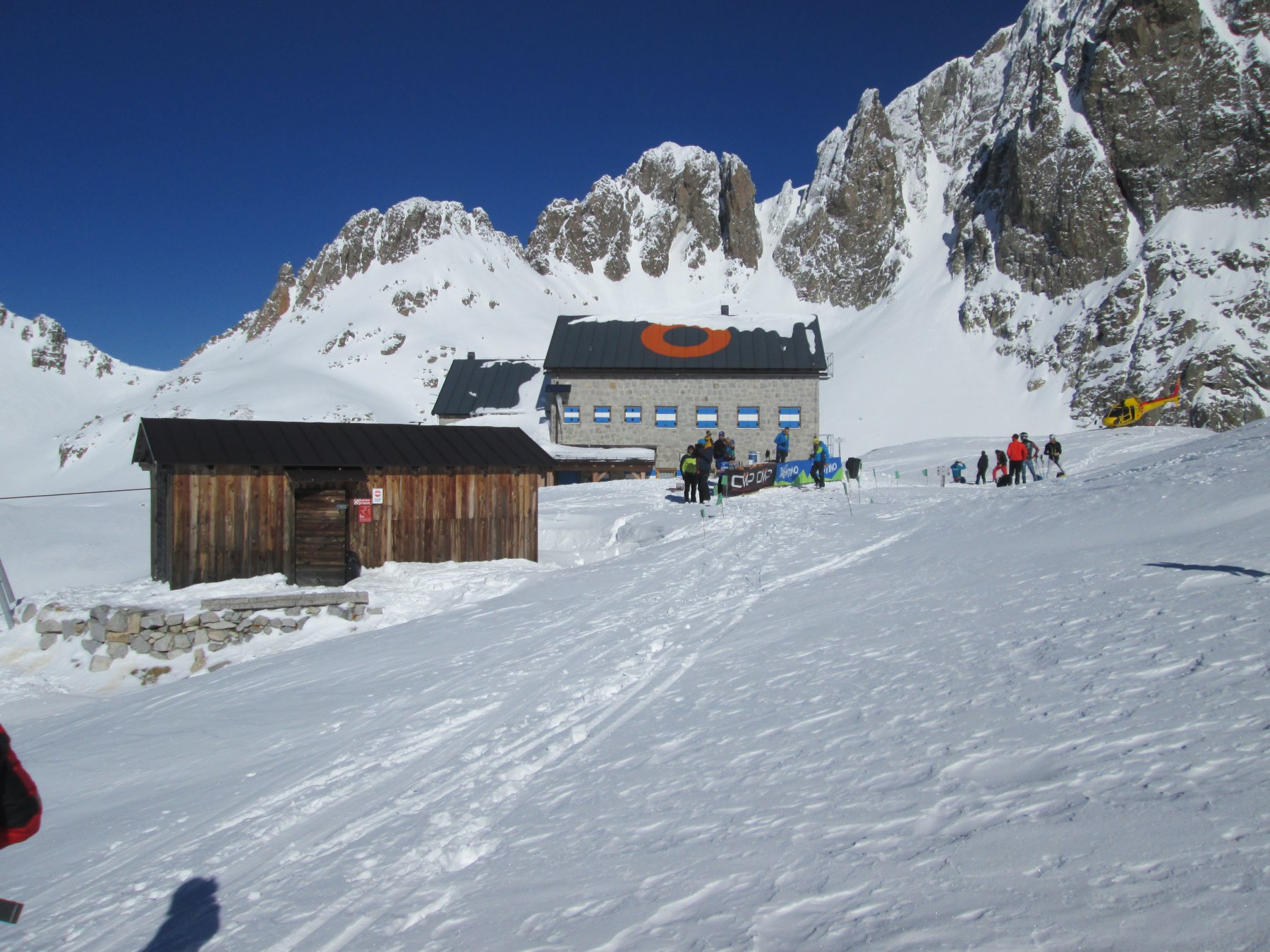 Si imbocca il sentiero SAT 327 che in leggera salita porta al Bualon. Giunti all’Aia dei Slavazzi, si aggira a sinistra il declivio roccioso, salendo con strette svolte il ripido pendio sotto la Cresta Socede. A circa quota 2000 mt si inizia a salire in diagonale verso est e con alcune svolte, cercando il percorso migliore si giunge nei pressi del Rifugio Ottone Brentari. Da qui con ampio arco a sx si raggiunge la Forzeletta (2680 mt). Si scende di una cinquantina di metri se necessario aiutandosi con piccozza e corda. Si calzano nuovamente gli sci e si raggiunge la cima per i ripidi pendii est. Discesa per l’itinerario di salita.