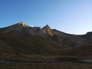 per la via normale (vedi itinerario cresta sud-est) disarrampicando o con una doppia dal secondo cavo attrezzato sulla cresta fino alla cengia sottostante e poi ancora disarrampicando fino alla Sella d’Asti e poi per sentiero fino alla base e poi al laghetto dalla partenza.