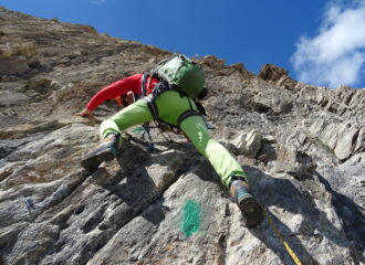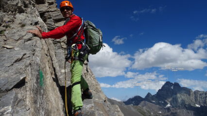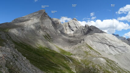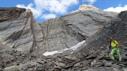 Abbiamo effettuato la salita partendo dal Colle dell’Agnello salendo un breve tratto di sentiero per la normale del Pan di Zucchero, portandoci sul costone. Da qua siamo scesi per un labile sentierino il ripido versante a tratti erboso che immette nel Vallone della Rossa, poi con un traverso ci siamo raccordati alla via normale che sale dal laghetto. Giunti alla sella d’Asti, ci mettiamo in assetto alpinistico e procediamo sul tratto del castello sommitale che porta al Pic d’Asti. Primo tratto per portarsi verso il camino con rocce malferme, canale che sale all’intaglio della Torre Gina un po’ esposto ma ben appigliato. Facile traverso camminabile verso il muretto finale che risulta ben attrezzato con spit. Aereo e facile il panoramico tratto di cresta che porta in vetta. Discesa senza doppie a ritroso disarrampicando quello che si è salito, oggi la roccia asciutta e ben appigliata lo permetteva ovviamente. Rientro alternativo al Colle dell’Agnello abbandonando la via normale, portandosi con un traverso sotto costa a dx verso un’evidente una selletta sulla cresta SE del Pic d’Asti. Da li siamo scesi su labile sentierino tra rocce di un ex ghiacciaio il Vallone della Rossa risalendo in breve il costone che porta poi al Colle dell’Agnello.