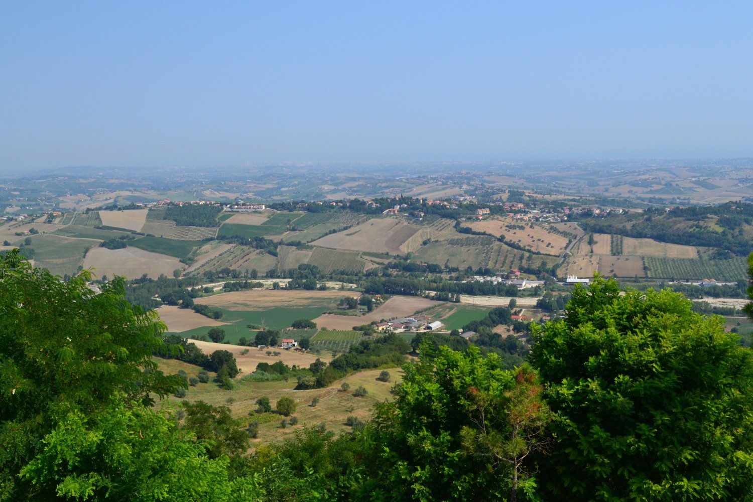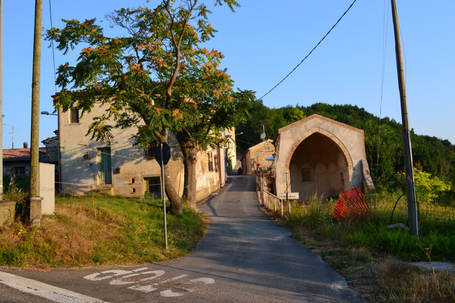 Si continua sullo stradello che segue il corso del torrente percorsi circa 350 m si arriva al bivio per Borgo Pedrosa. Si imbocca il sentiero sulla sx in corrispondenza sulla dx di una recinzione con rete plastificata e un cancello in ferro si sale rapidamente e nella parte alta si costeggiano i ruderi di alcune abitazioni e una linea elettrica – nella parte terminale il sentiero assume l’aspetto di uno sterrato che in breve conduce a Borgo Pedrosa. Da Borgo Pedrosa si attraversa la Sp.84 – sul lato opposto parte in salita una rampa in ciottoli di fiume che rapidamente ci conduce a Montefiore – ritroviamo il segnavia CAI 019. Al termine della rampa deviare a dx – transitare davanti alla caserma dei carabinieri e poche decine di metri dopo sulla sx imboccare via Panoramica – continuare superando una curva a gomito sulla sx sino ad arrivare al ristorante “La Baita” sul Monte Auro. Superata “La Baita” la strada inizia a scendere – supera sulla sx il cimitero ed un convento per arrivare al bivio per Morciano – (volendo sul lato dx della strada, davanti al cimitero, si può percorrere un sentierino in terra battuta che dopo 250 m arriva sulla sommità del Monte Auro 478 m). Al bivio girare a sx per via XX Settembre e dopo circa 900 m si arriva al centro storico di Montefiore. I segnavia CAI portano alla rampa che si è percorsa in salita, per raggiungere nuovamente Borgo Pedrosa. Si individua il segno CAI 019 che ci indica di deviare a sx e di percorrere uno stradello denominato Delle Valli la stradina scende per breve tratto per poi risalire e immettersi sulla strada asfaltata. Si devia a dx e seguendo la strada in breve si giunge al Santuario Madonna di Bonora. Sul retro del Santuario a margine del parcheggio la freccia CAI 019 indica l’imbocco del sentiero che scende rapidamente verso il fondovalle del rio Ventena e termina ad un bivio. Al bivio si prende a sx e si segue lungamente il Ventena su sterrata, piegando poi a sinistra (sempre segnavia CAI 019) in direzione della Chiesa di Farneto. Raggiunta la strada asfaltata, ai vari bivi si segue sempre il segnavia 019 che conduce a Gemmano. Visitato il borgo, immettersi sul tracciato per Cà Pepe (segnavia CAI 039) che in discesa esce dal paese per raggiungere nuovamente nel bosco il rio Ventena. Si guada il torrente e si arriva sulla sterrata percorsa in precedenza che si segue interamente fino al bivio per Borgo Pedrosa imboccato all’andata. Da qui si torna a Casarola.