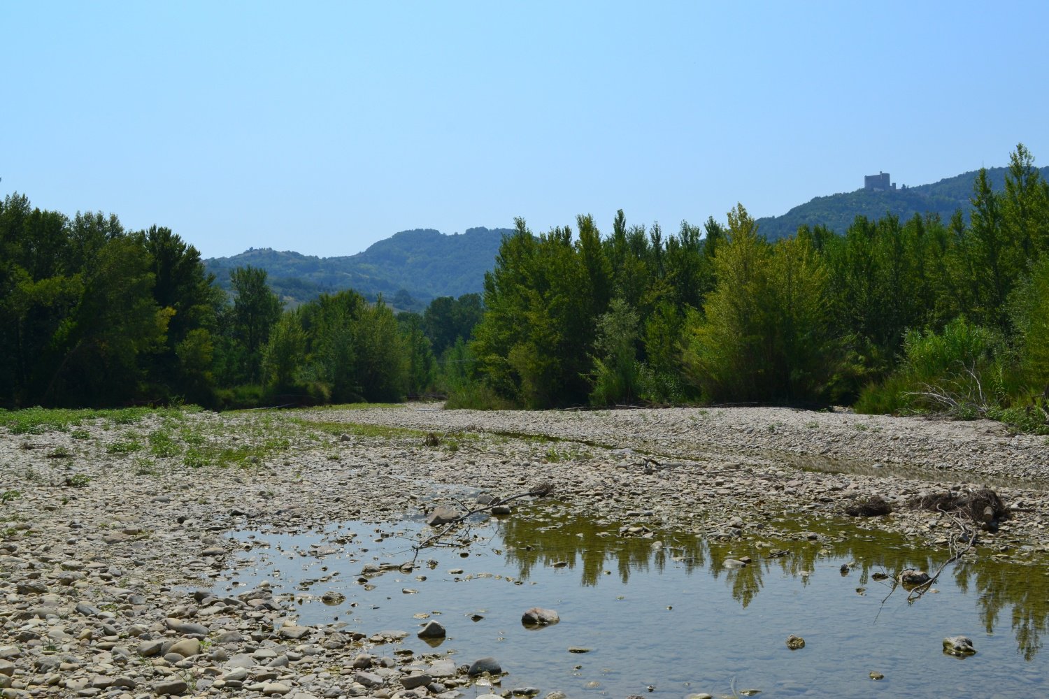 Dal piazzale inizia il percorso – presenza di una freccia segnaletica CAI (sentiero 021) – procedere su questa strada in discesa verso il fiume Conca. Arrivati al cartello segnaletico “Percorso del Torrente Conca” continuare sul tracciato del guado e attraversare il fiume – superato il fiume il sentiero aggira sulla sx due costruzioni abbandonate e dopo breve salita si immette sulla via Mulino Ciotti. Si devia a dx e si supera sulla sx l’agriturismo “Vecchio Gelso” – il lungo rettilineo in leggera salita (via Mulino Ciotti) termina sulla strada asfaltata Sp.84. Girare a dx – dopo breve tratto, sul lato opposto della strada una grossa quercia coincide con l’inizio di uno stradello che sale fino a raggiungere due case quotate 143 m. Lo sterrato piega a sx e in graduale discesa si arriva al ponticello sul torrente Ventena.