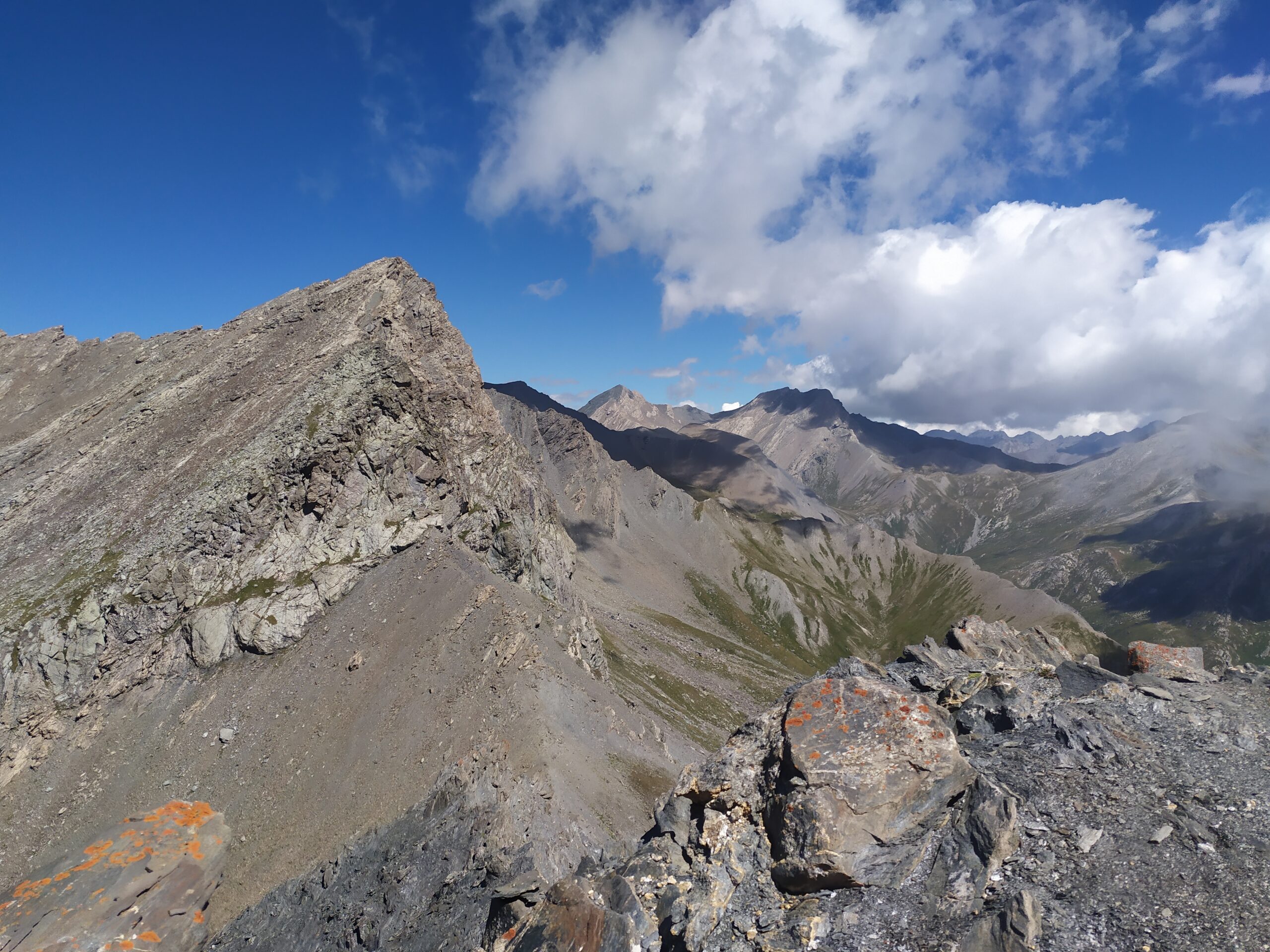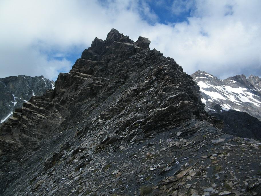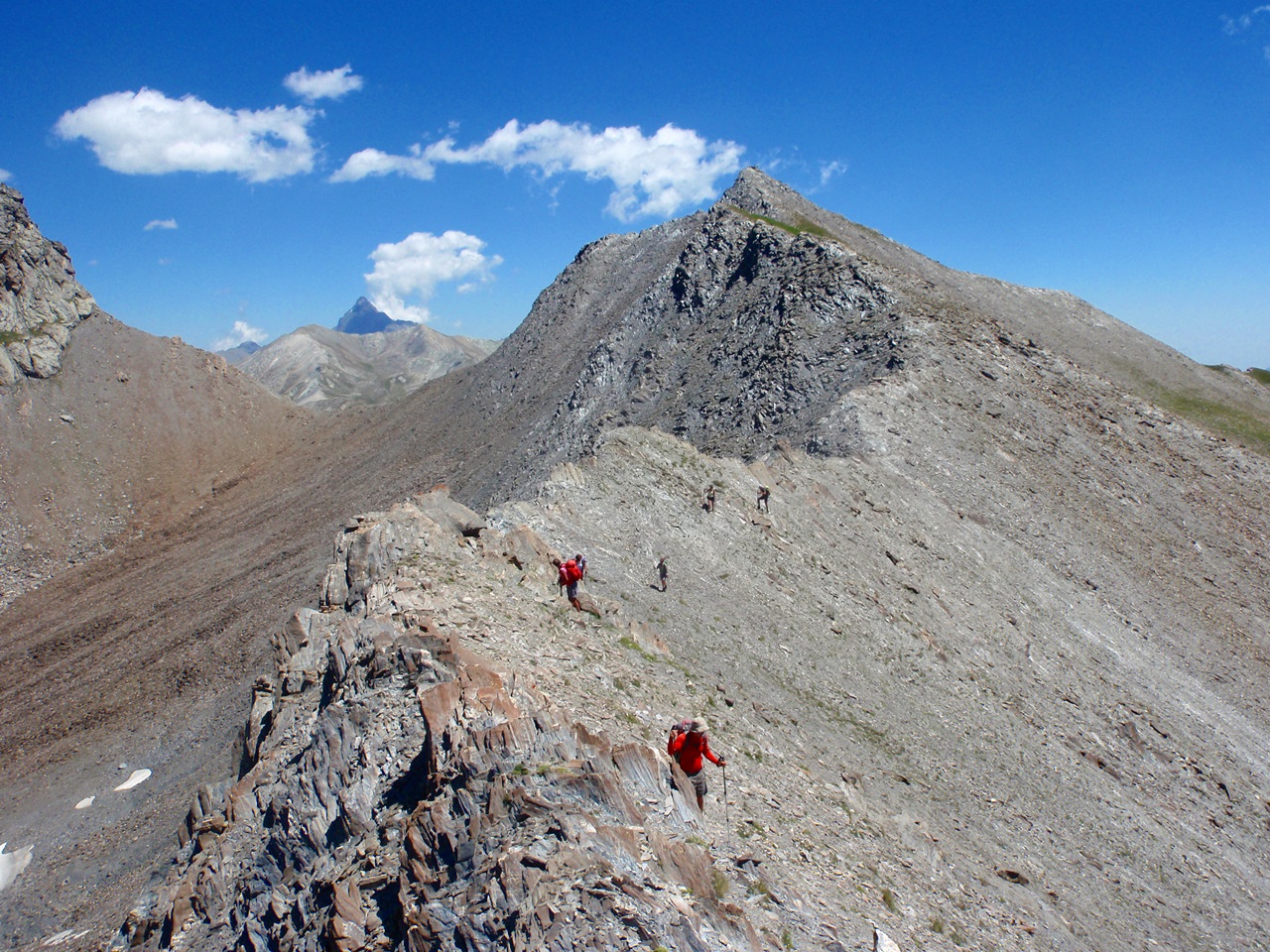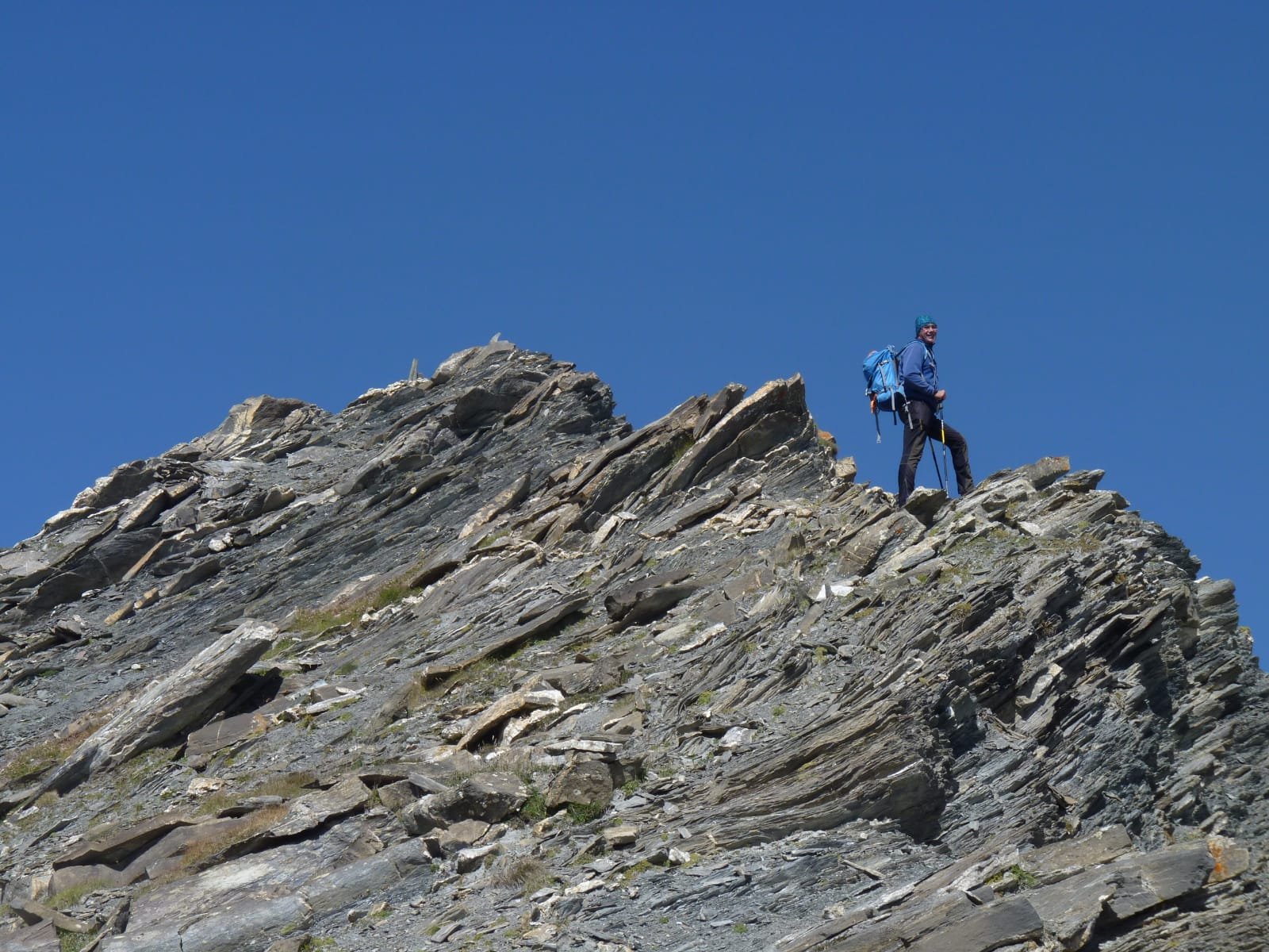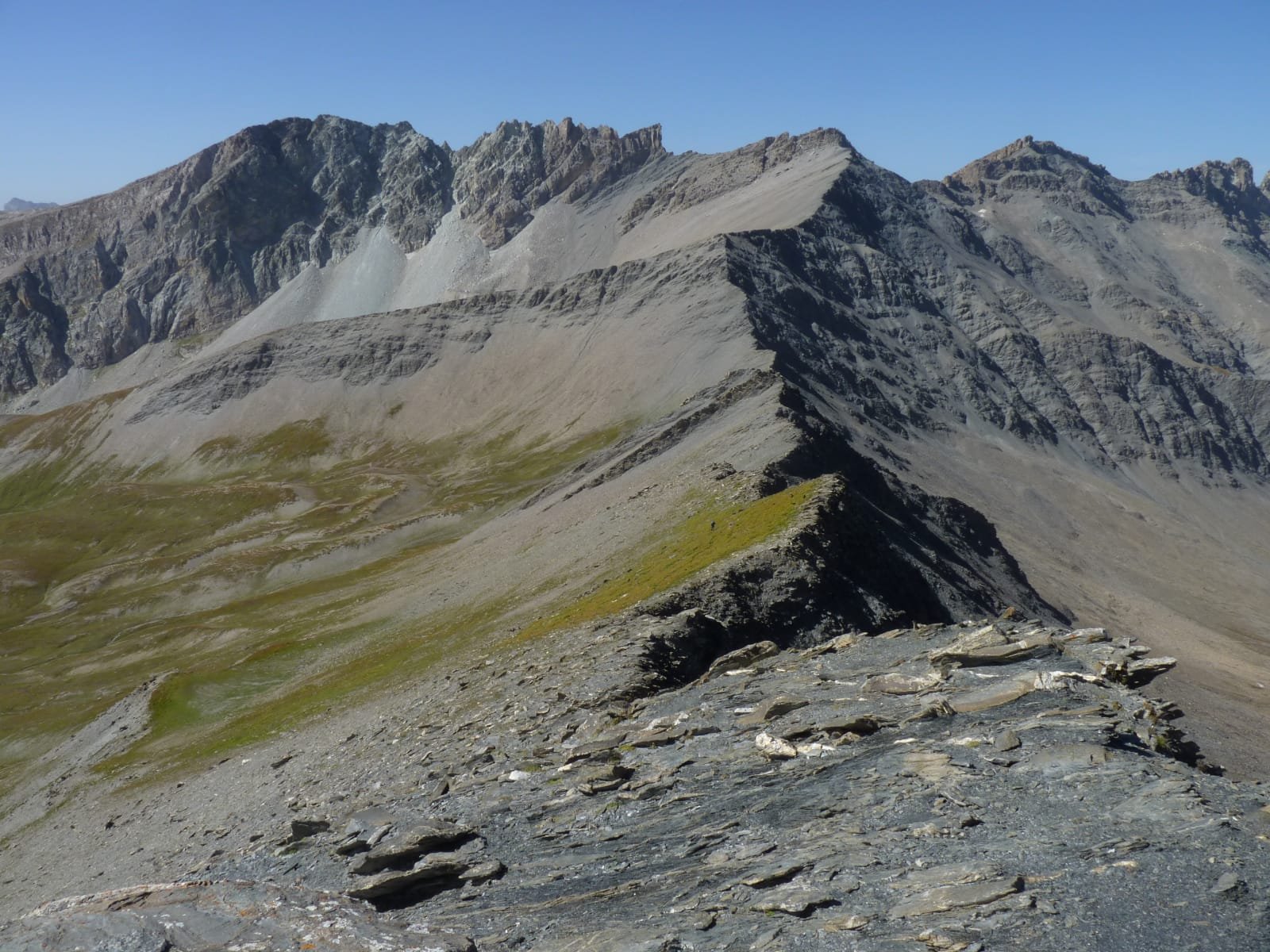 Raggiunto un ricovero poco sotto il Colle dell’Autaret, dove i prati lasciano il posto alle pietraie, si abbandona la traccia di sentiero salendo in diagonale verso destra su un ripido pendio di terra e detriti raggiungendo la cresta Ovest della nostra meta a monte di 2 evidenti affioramenti rocciosi.