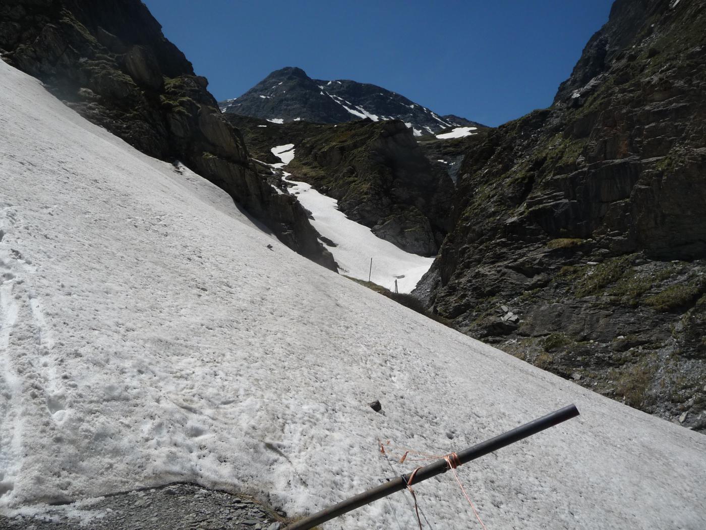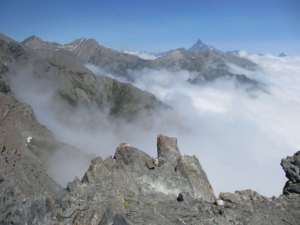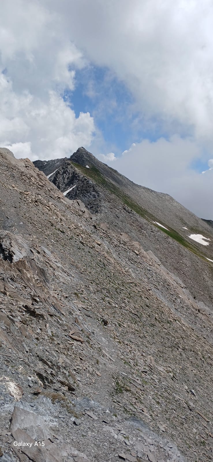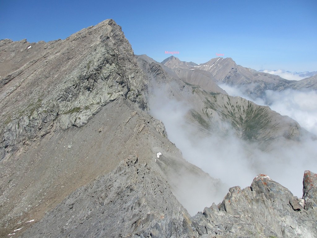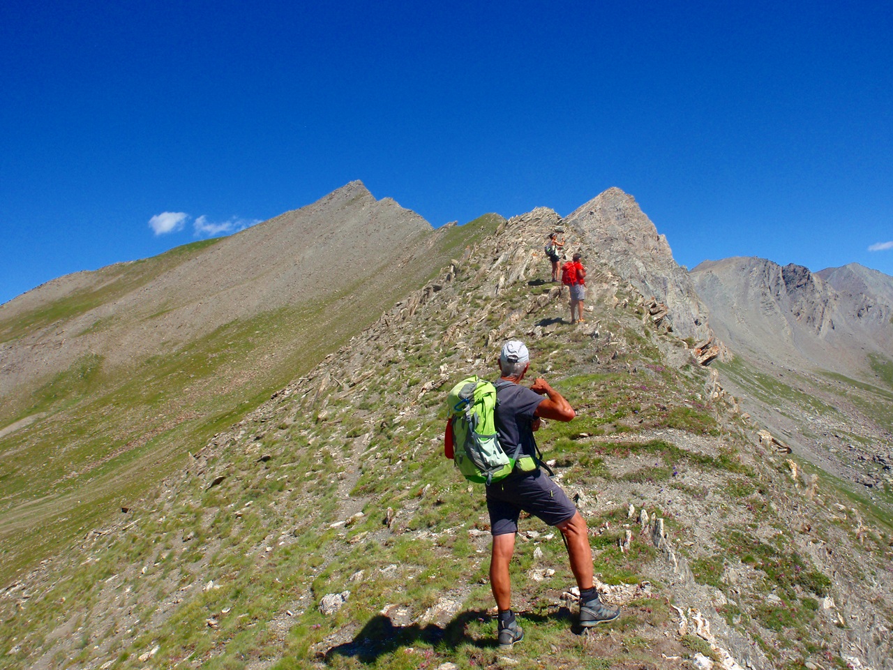 Raggiunto un ricovero poco sotto il Colle dell’Autaret, dove i prati lasciano il posto alle pietraie, si abbandona la traccia di sentiero salendo in diagonale verso destra su un ripido pendio di terra e detriti raggiungendo la cresta Ovest della nostra meta a monte di 2 evidenti affioramenti rocciosi.