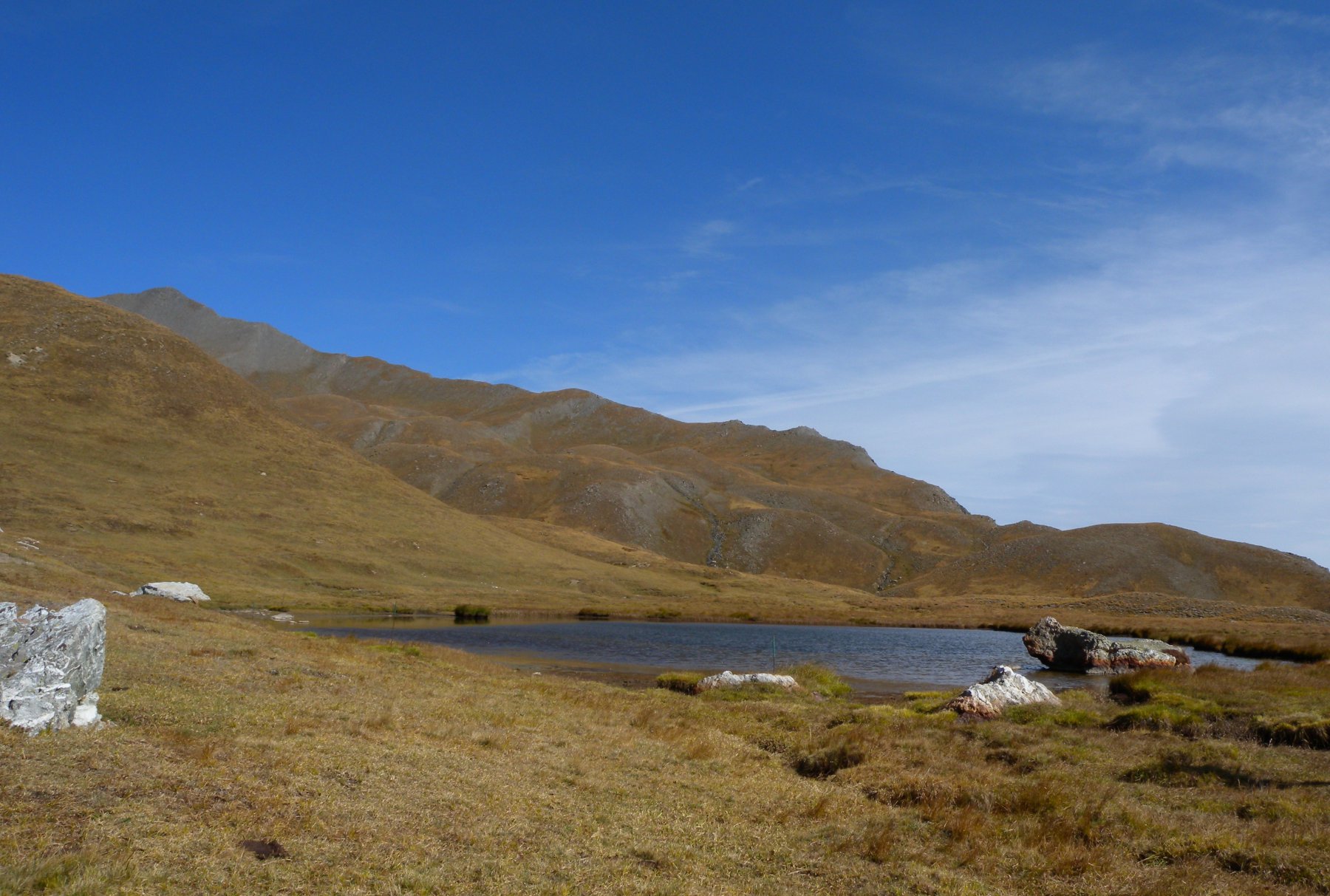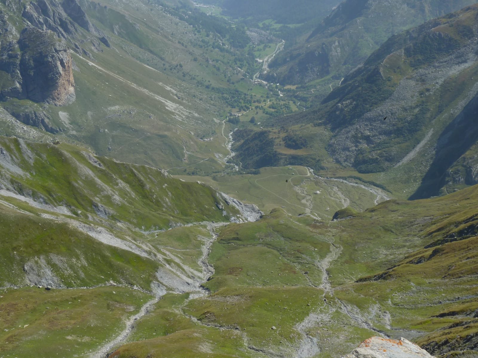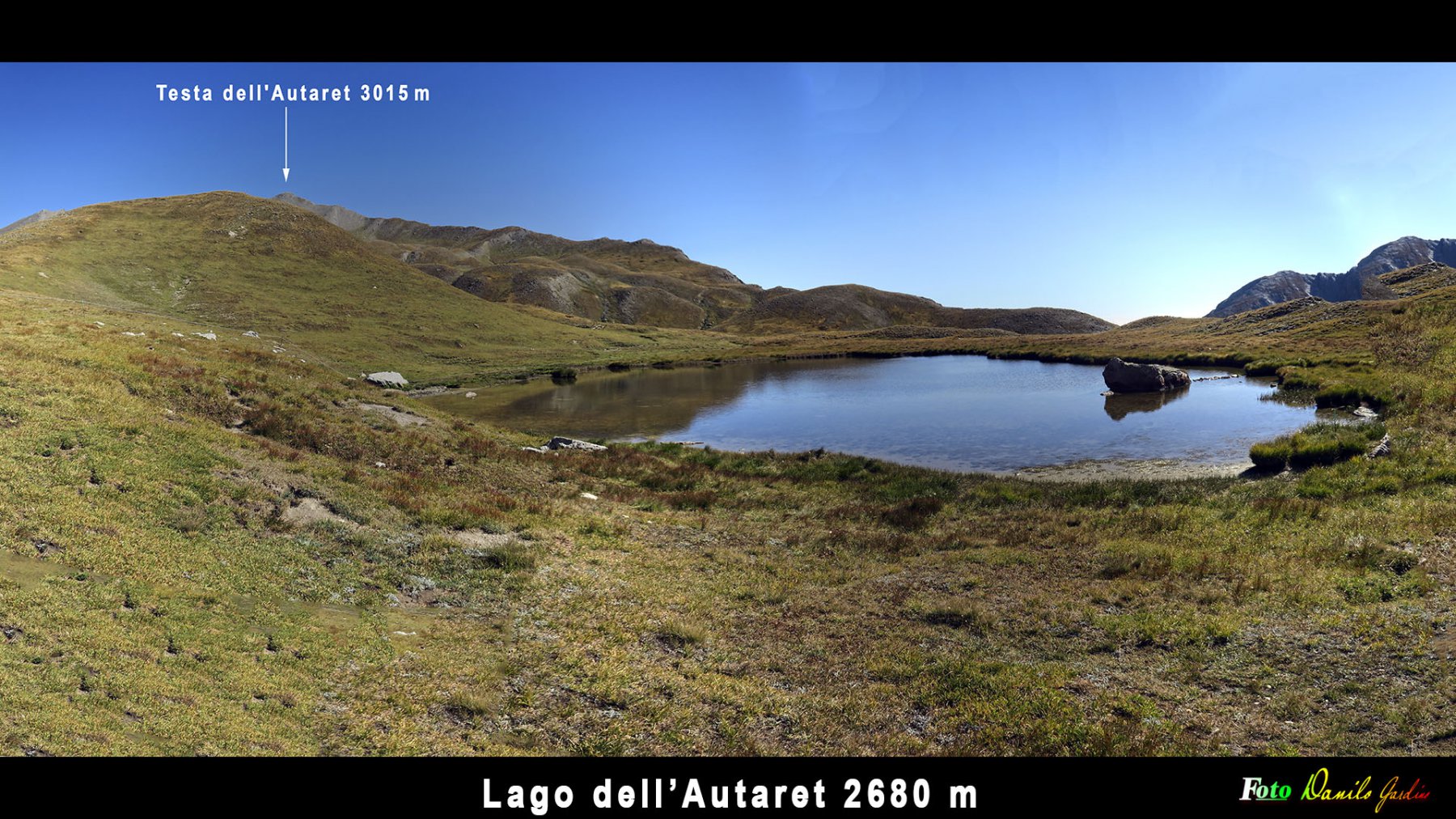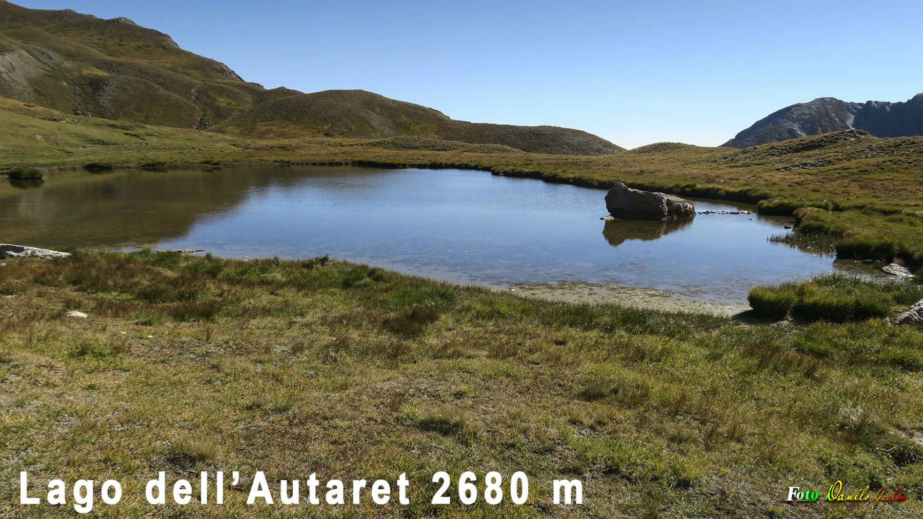 Pressochè al termine della dorsale, la si abbandona per scendere a destra fino alle sponde del piccolo Lago dell’Autaret e da qui alle sottostanti Grange dell’Autaret, dove si ritrova il percorso di salita.