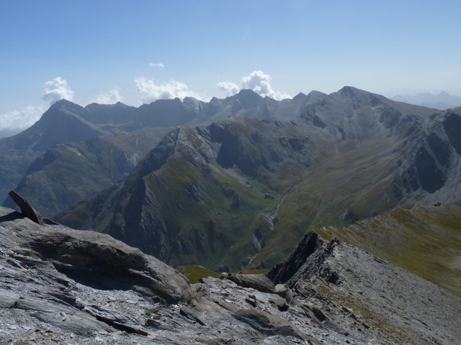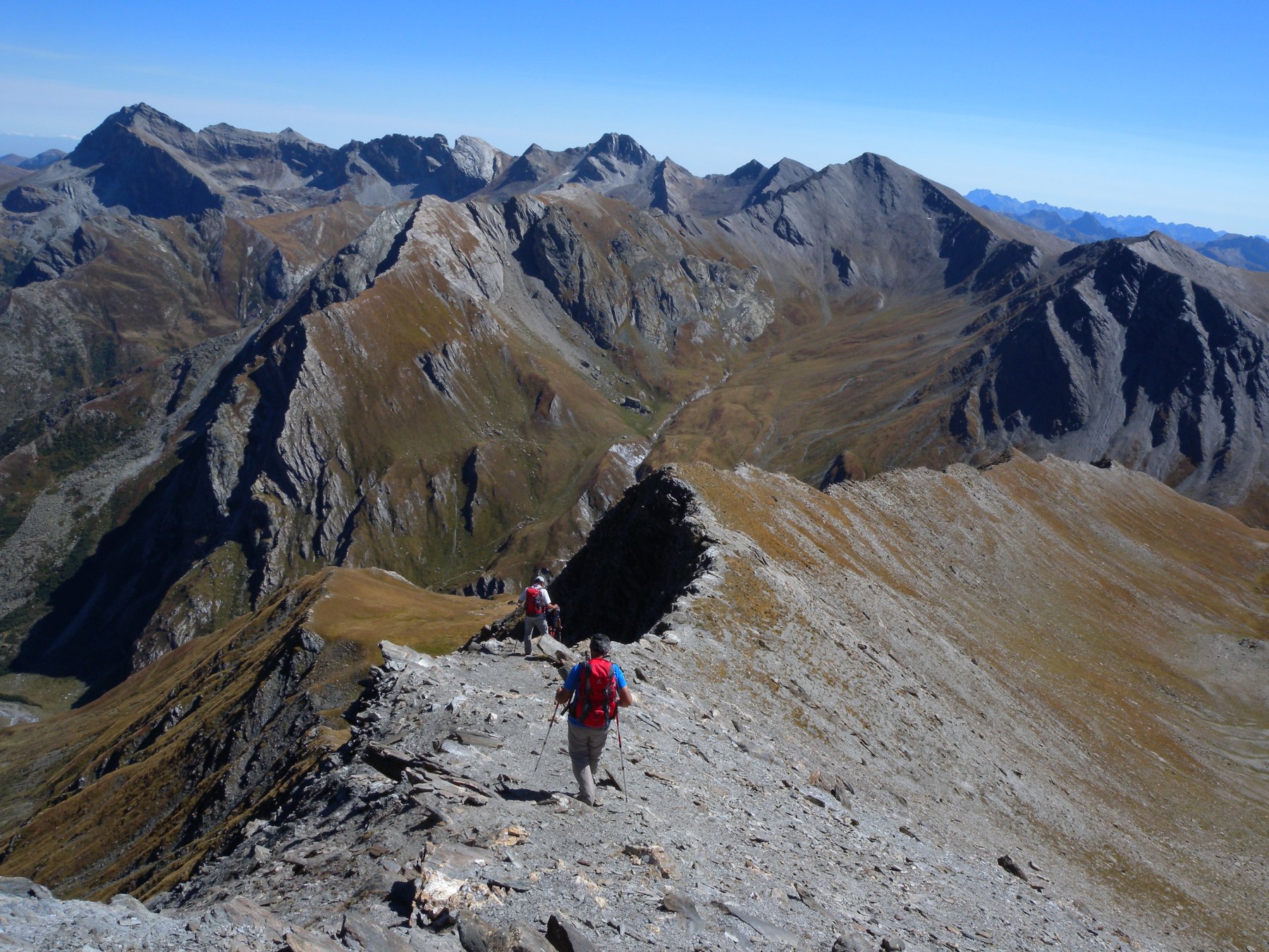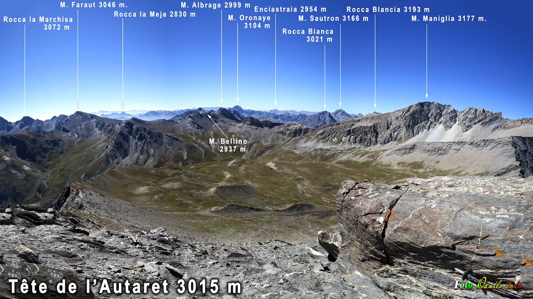 Da qui, seguendo la cresta di pietrame, si raggiunge in breve la Testa dell’Autaret. In discesa, seguire una evidente traccia che, con percorso molto panoramico, percorre tutta la lunga cresta Sud.