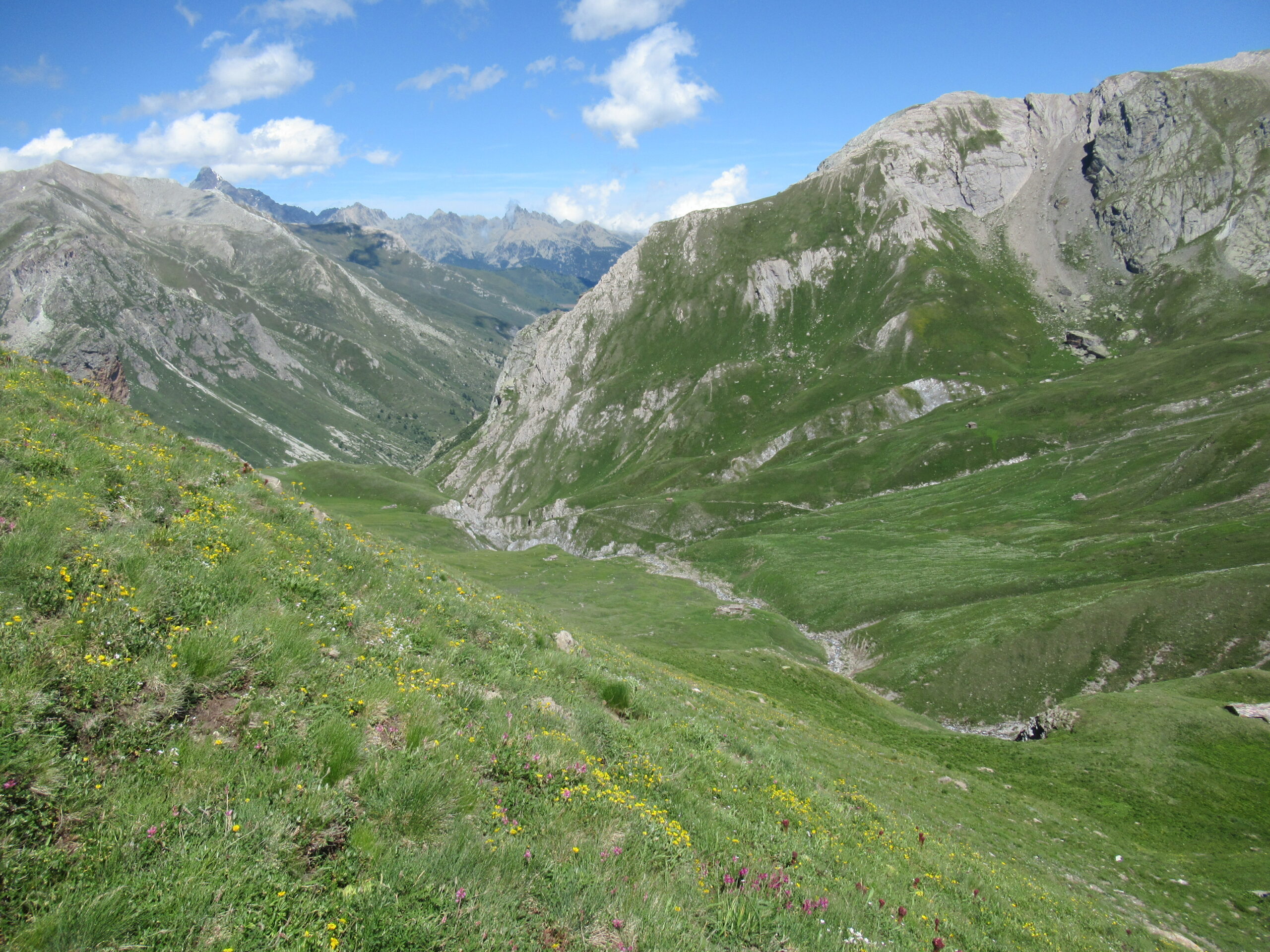 Dalle baite si prosegue per breve tratto sul sentiero per la Bassa di Terrarossa e il Monte Maniglia, fino a giungere ad un bivio, dove si trascura la diramazione di sinistra per seguire la traccia che sale a destra fino a raggiungere il vastissimo altopiano erboso chiuso a Ovest dal Monte Maniglia e a Nord e ad Est dalle creste che si diramano della Testa dell’Autaret.
