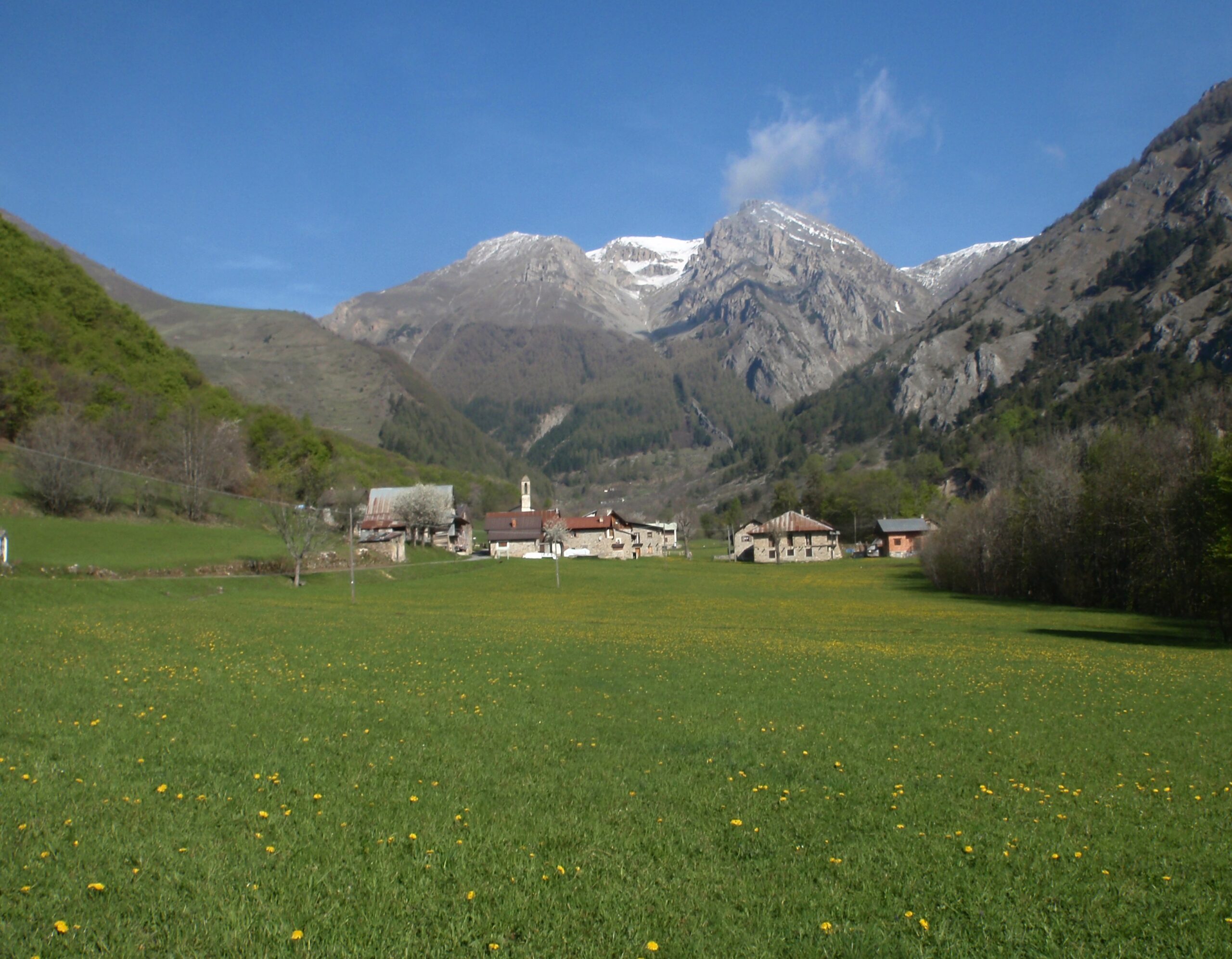 Dal parcheggio prima della borgata si ritorna indietro a piedi per circa 200 m e al primo tornante si prende la stradina che origina a destra.