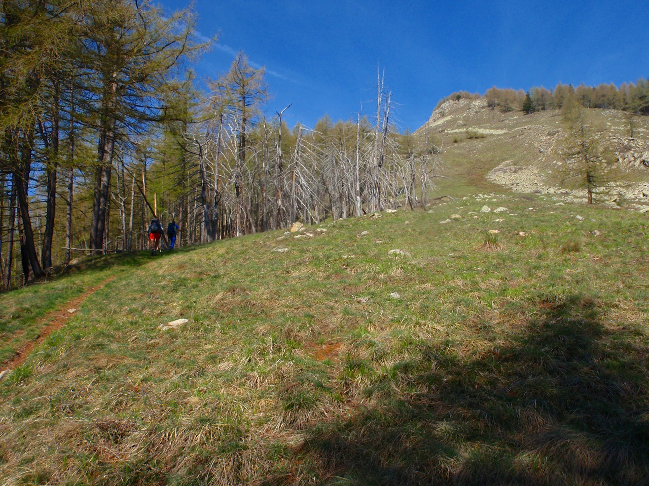 E’ anche possibile scendere dalla Varirosa per l’ampia ed erbosa cresta nord-ovest fino a un casotto in lamiera rossa e poi per tracce tra i rododendri raggiungere il Colle di Neraissa.