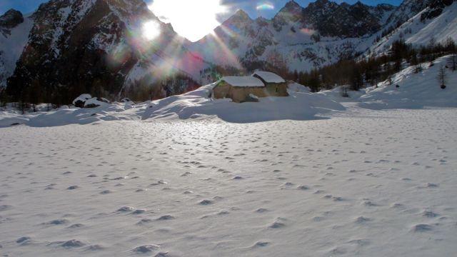 purtroppo non ho letto la relazione di ieri. L’autovallonasso è una gita su neve ghiacciata che non molla con le attuali gelide temperature. Oggi, peggio di ieri perché nella parte alta c’era vento, non fortissimo ma sicuramente non di piacevole compagnia. Al ritorno chiunque ridiscende sulla strada perché sciare è altra cosa. L’ambiente è sempre magico, la neve non manca mai, anzi, però dove non è crostaccia è marmo vetrificato, fortemente sconsigliata se le vostre lamine