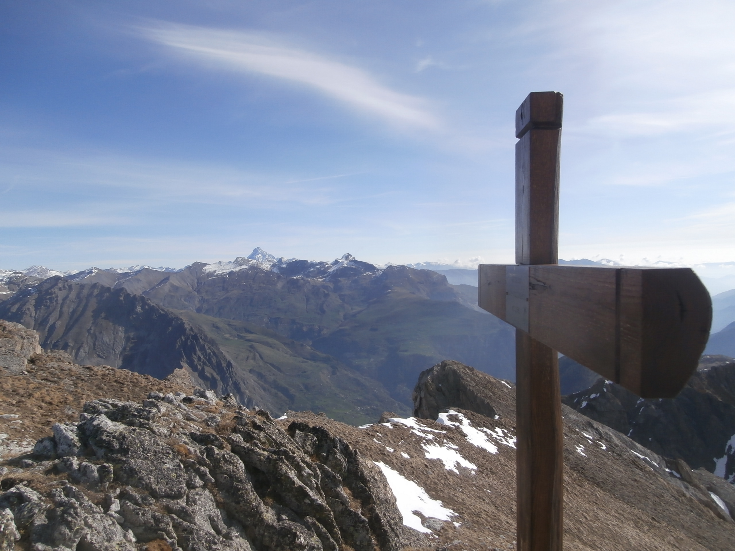 Buona la segnaletica e sentiero in versione estiva fino all’anticima sud (nuova croce da ottobre 2021): non si pesta più neve. Nel breve traverso ad oggi ancora qualche residuo nevoso che non crea particolari problemi con le temperature attuali durerà poco (noi oggi non abbiamo usato neanche i ramponi).
