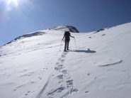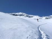 Procedendo ancora in direzione SO con un lungo diagonale dalle pendenze dolci, superati alcuni dossi si raggiunge il vallone-canale culminante con il passo Casset, compreso tra il crestone NE della Punta Lucellina e la bastionata NNO della cima Autour (punto d’incontro dell’itinerario proveniente dal pian della Mussa). Risalito con un breve strappo leggermente più ripido il canalino, si prosegue a a sinistra accedendo con un breve traverso al pendio sospeso che scende direttamente dalla punta, che si raggiunge senza difficoltà con gli ultimissimi metri che si impennano.