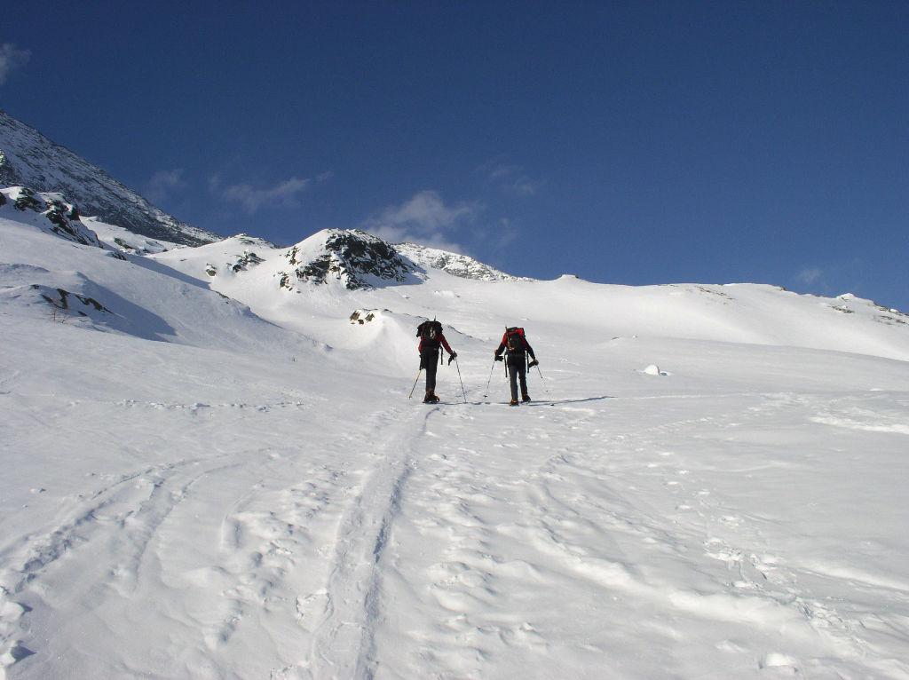 Percorso di grande sviluppo e che necessita di buon innevamento nella parte bassa a causa della natura del terreno.