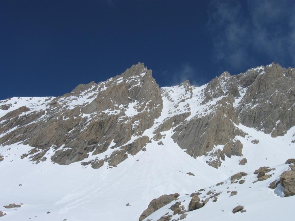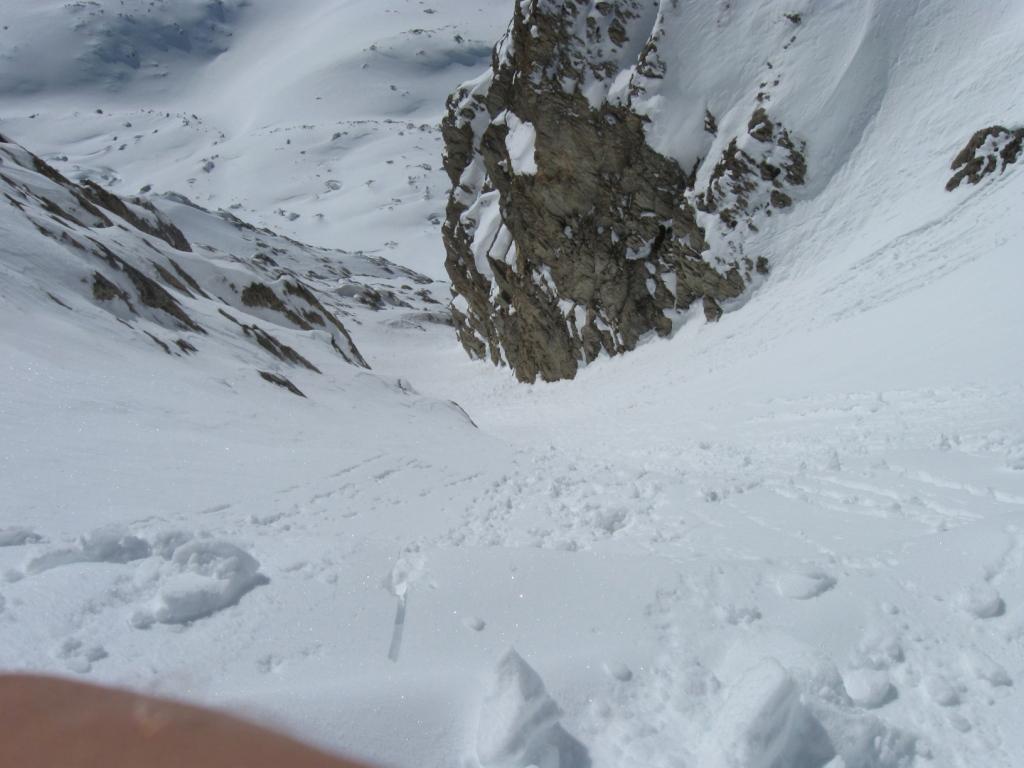 Canale incassato dalla forma ad arco "girato" a sinistra. Alla base spesso si trova una piccola cascata facilmente aggirabile grazie a una piccola cengia innevata che si trova a sinistra rispetto al conoide.