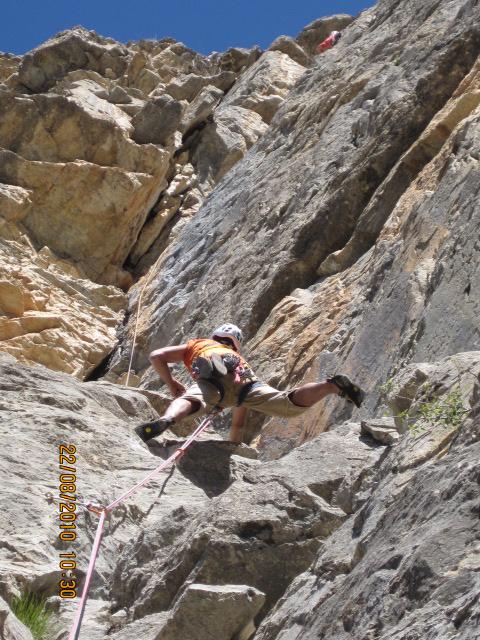 I gradi sulla carta ingannano, bisogna affrontare la via con un buon allenamento di braccia, specie se si seguono ciecamente quelli davanti e si ha una vecchia relazione che non menziona la variante Fiaschi di 6b+….