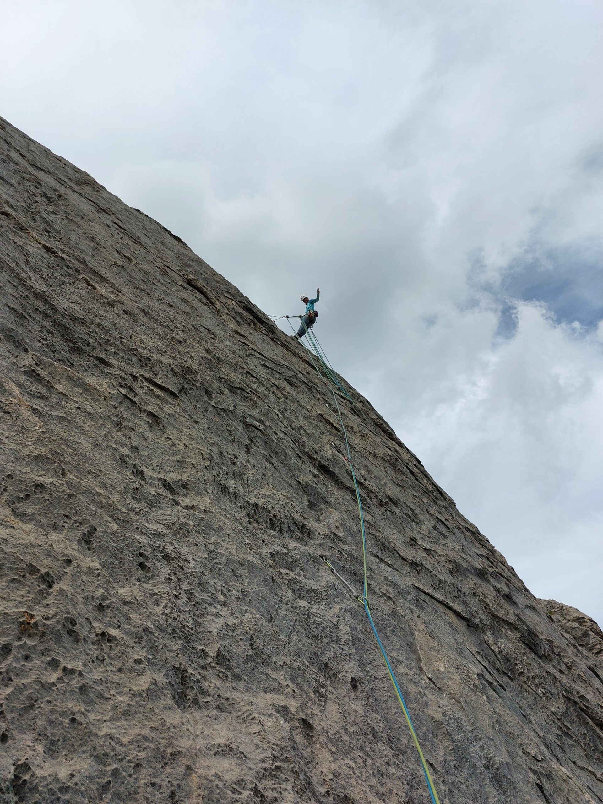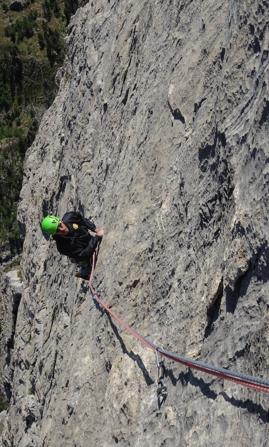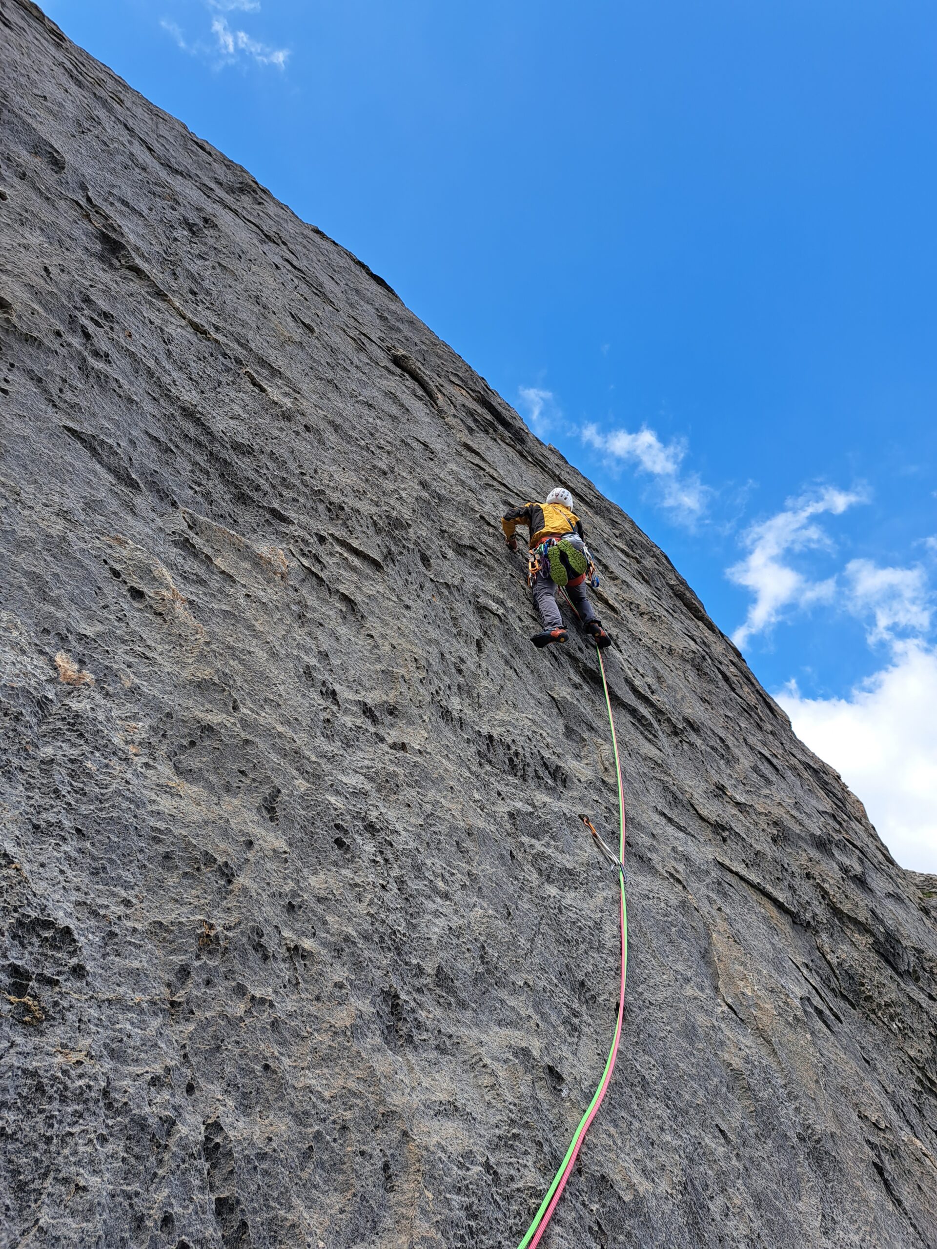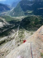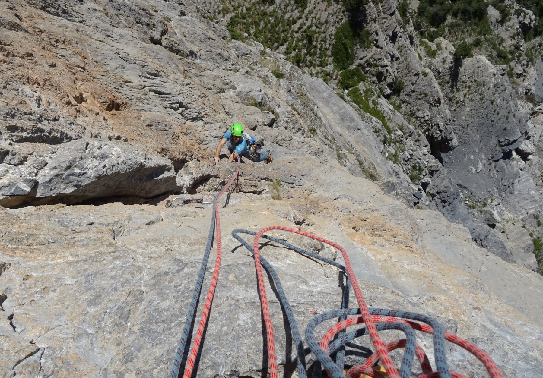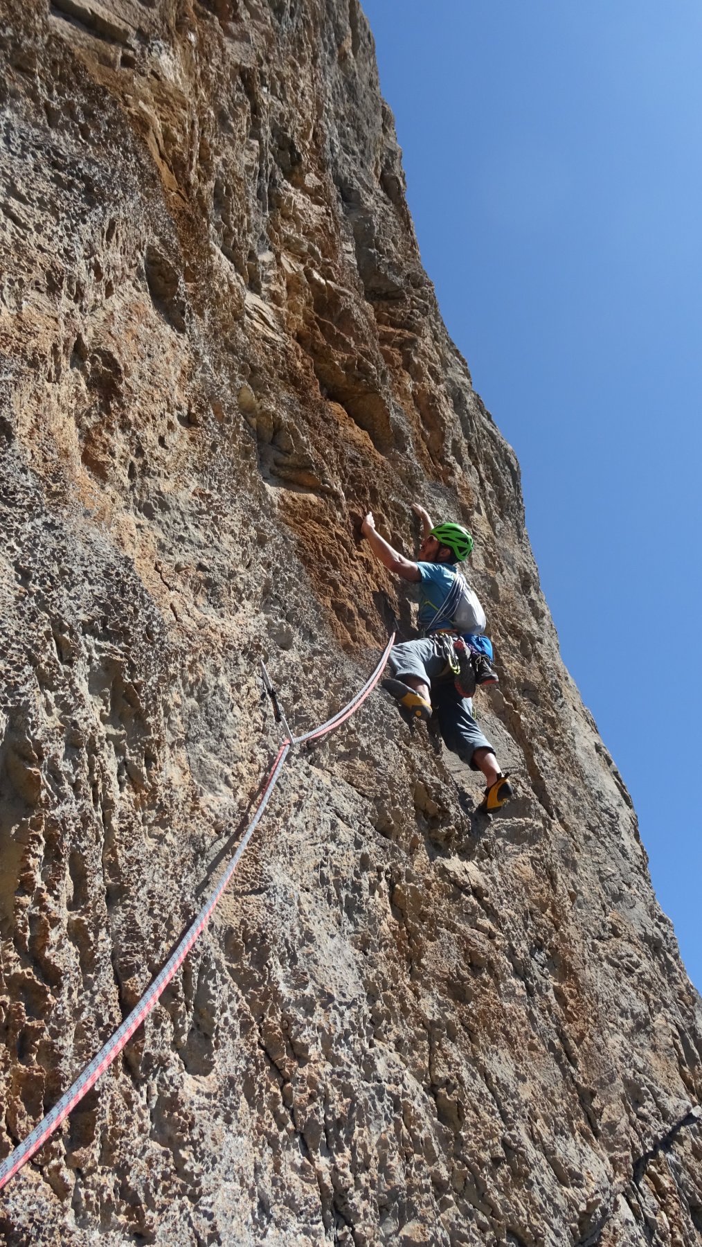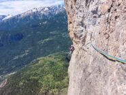 L.9: 7a muro verticale e poi diedro; sosta sotto un tettino