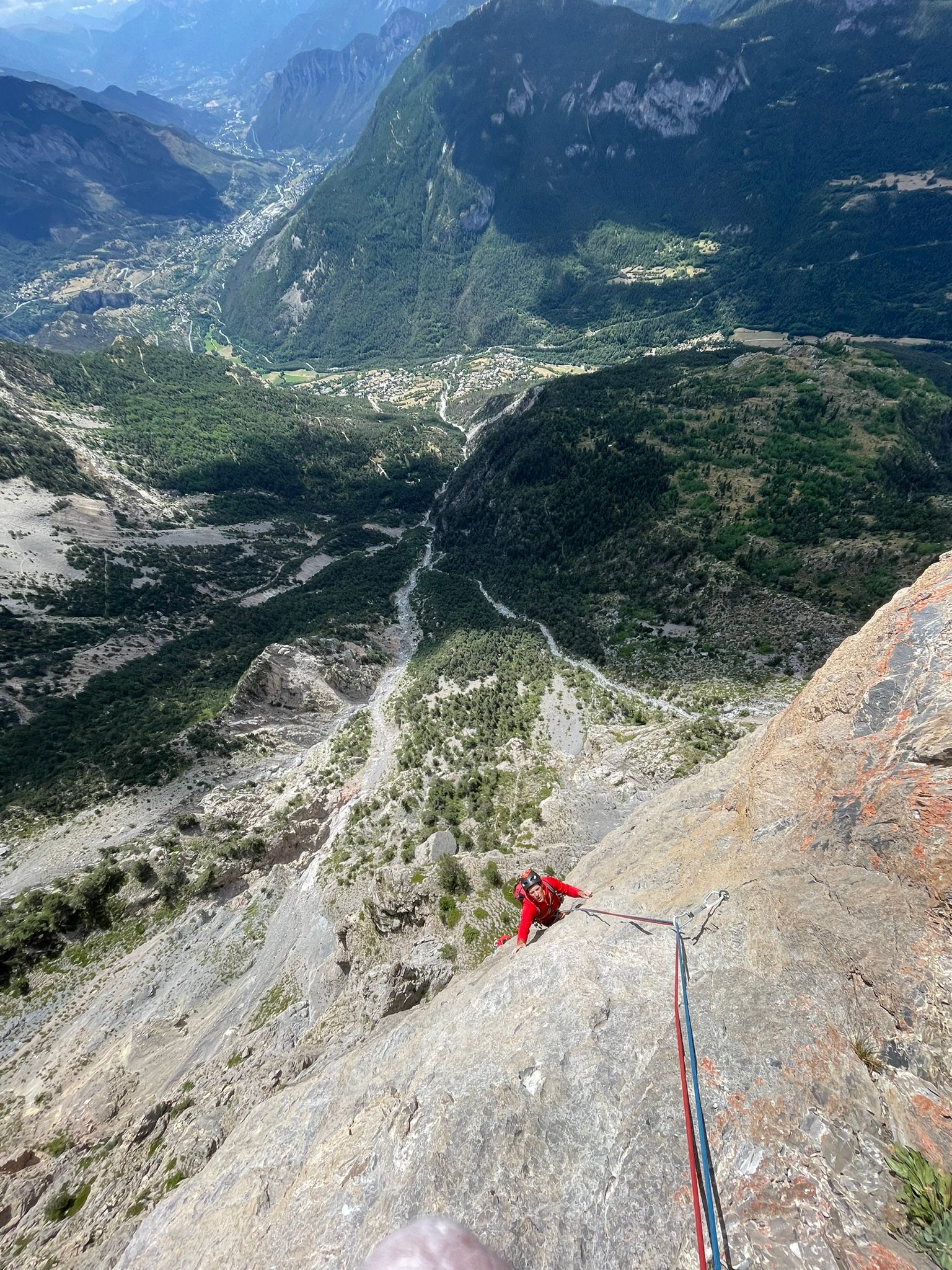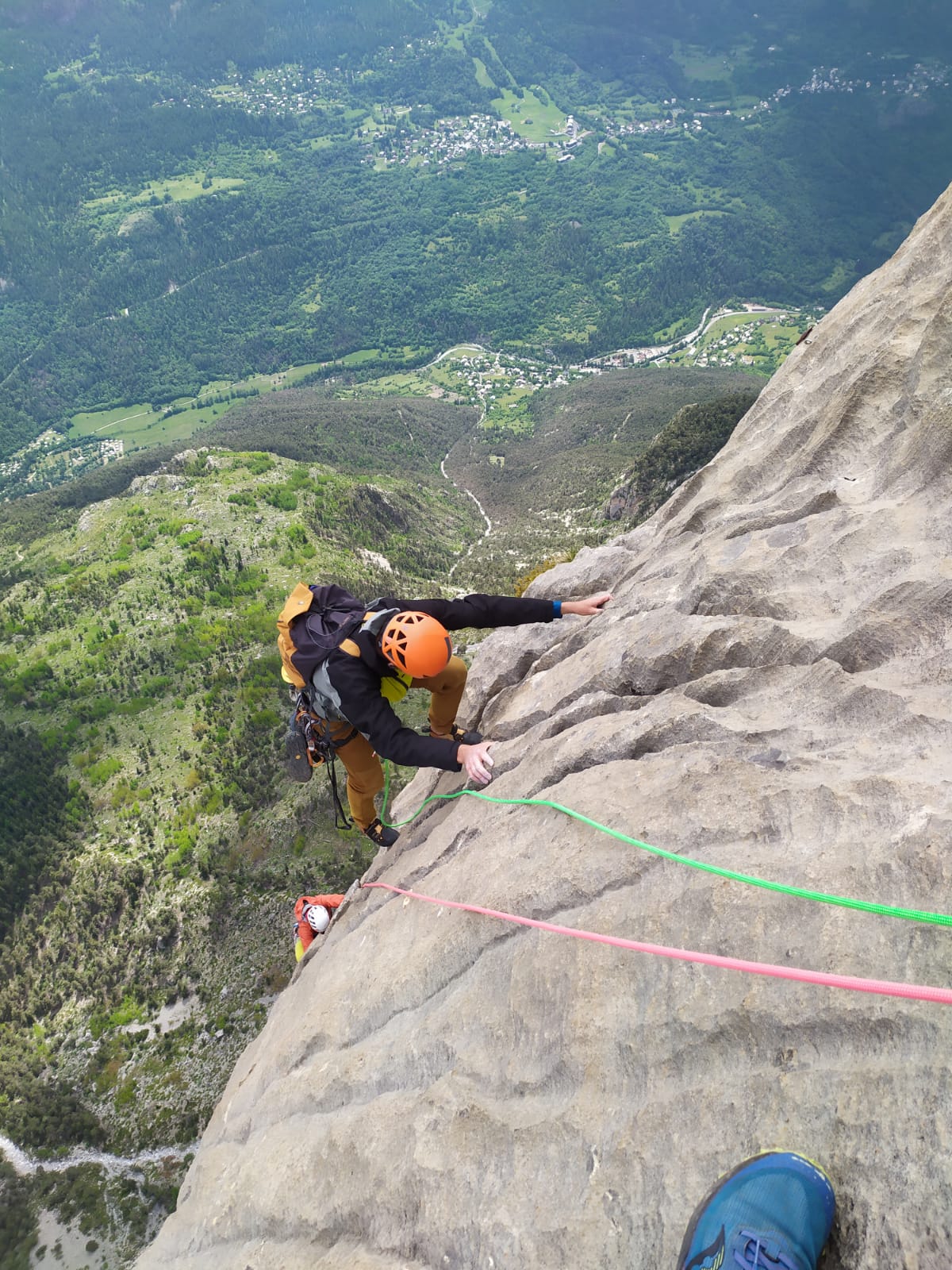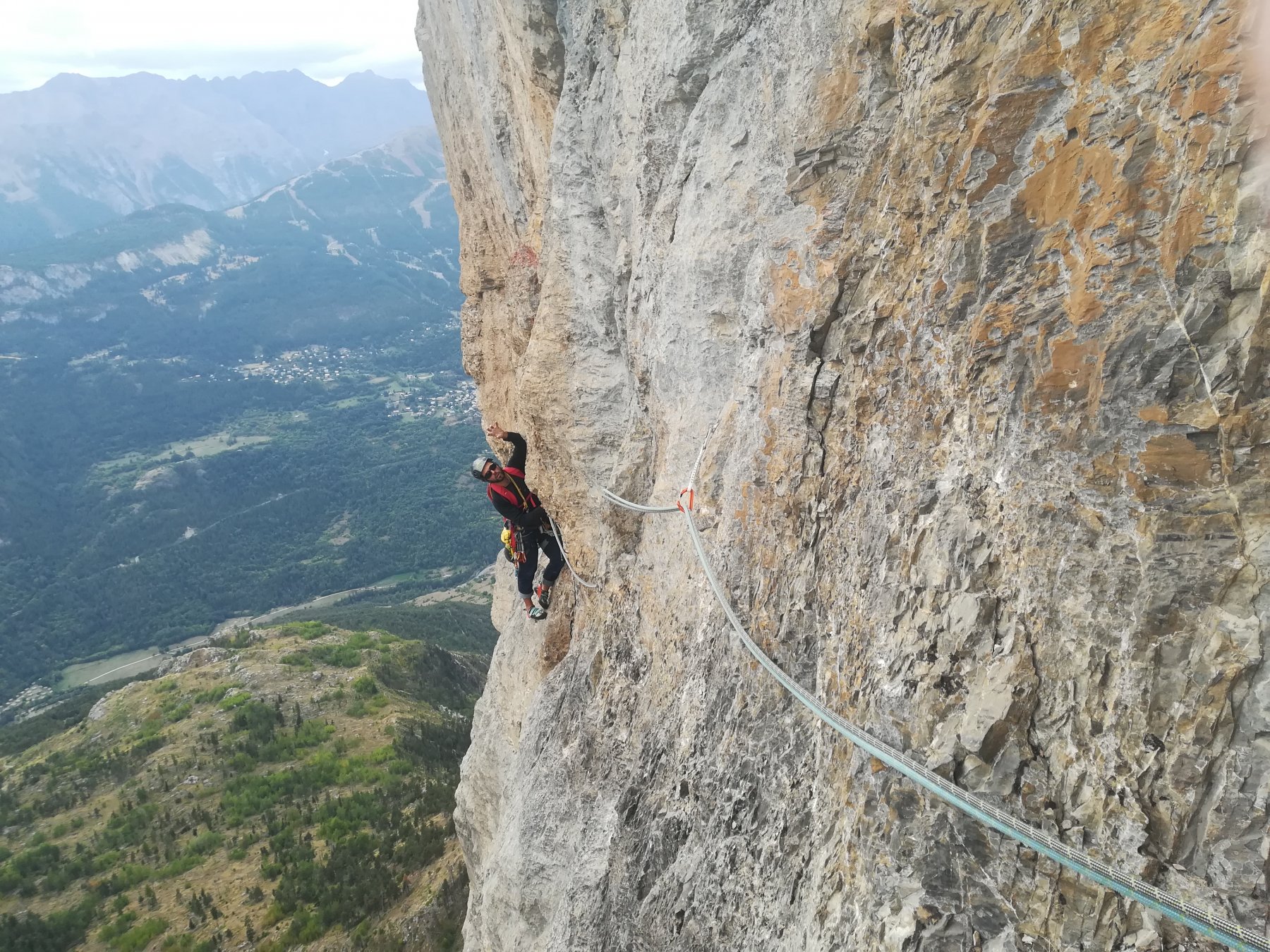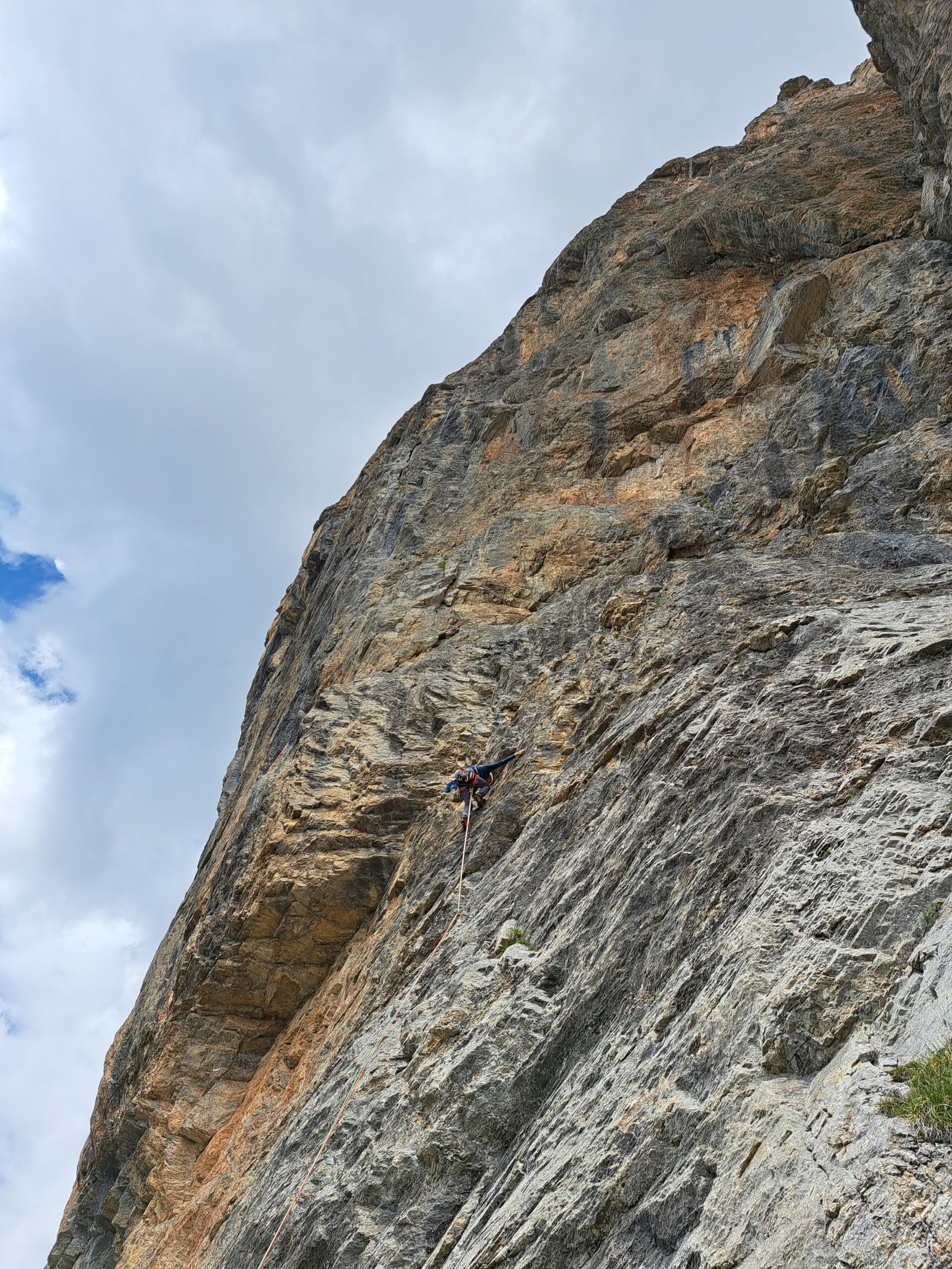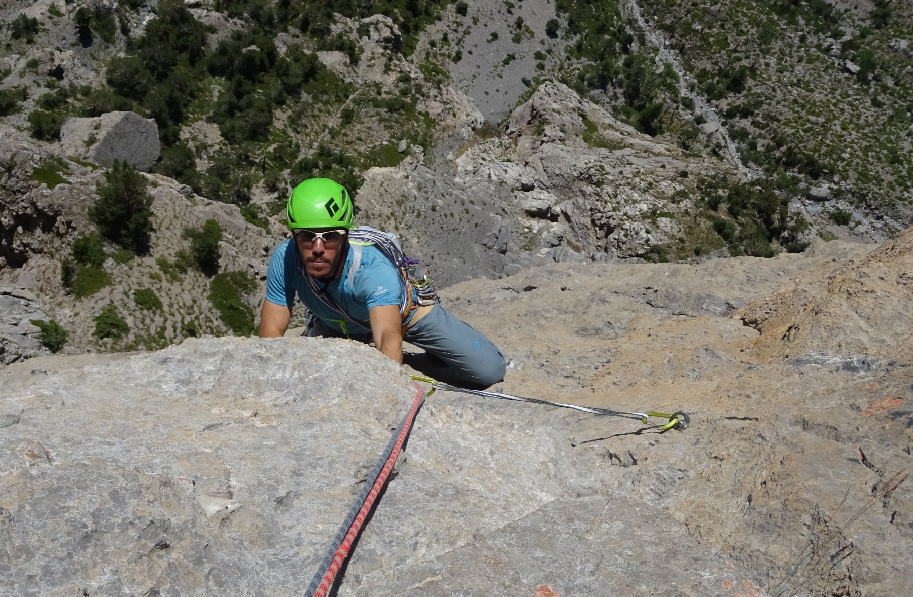 L.9: 7a muro verticale e poi diedro; sosta sotto un tettino