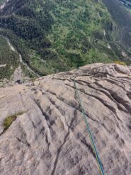 L.12: 6a diedro fessurato e poi cengione; non c’è la sosta ma solo uno spit su di un blocco staccato!!