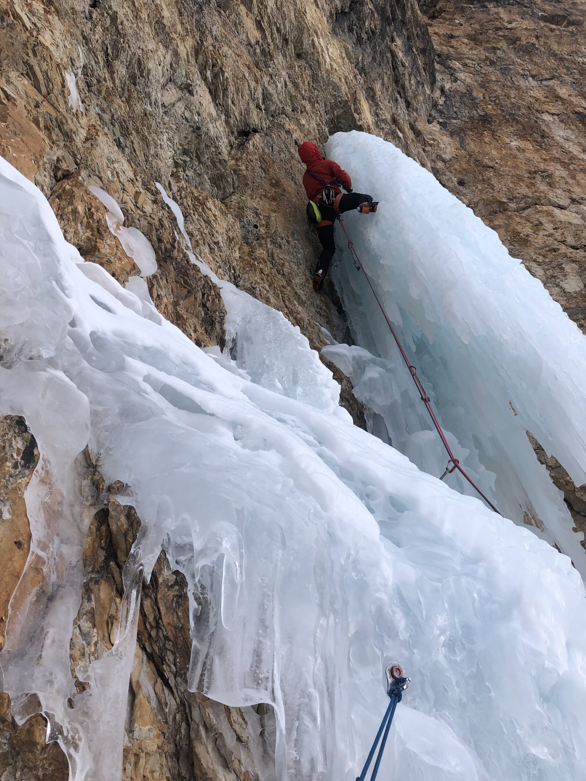 - L3- Wi 5+ sostenuto, sosta su ghiaccio e un chiodo